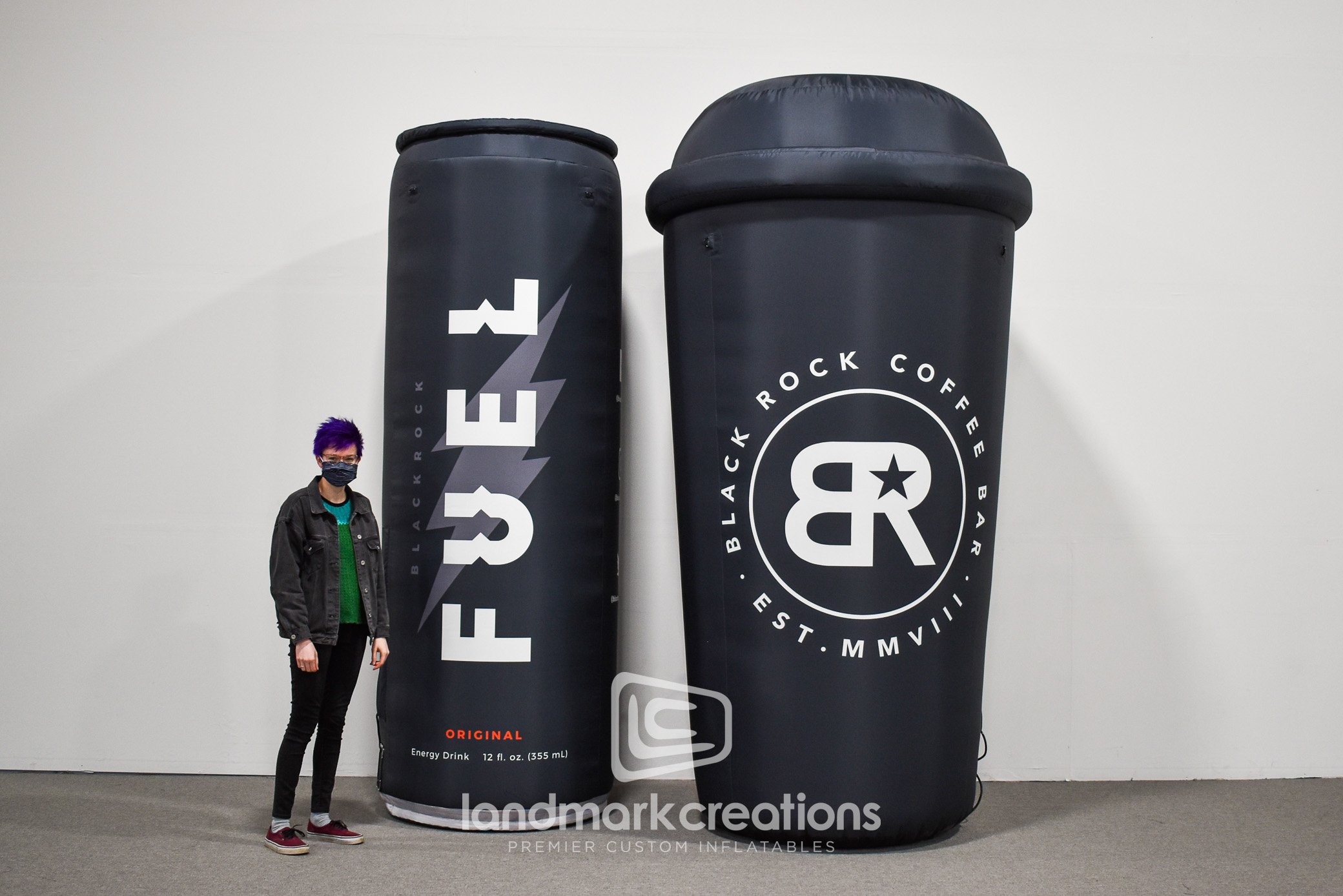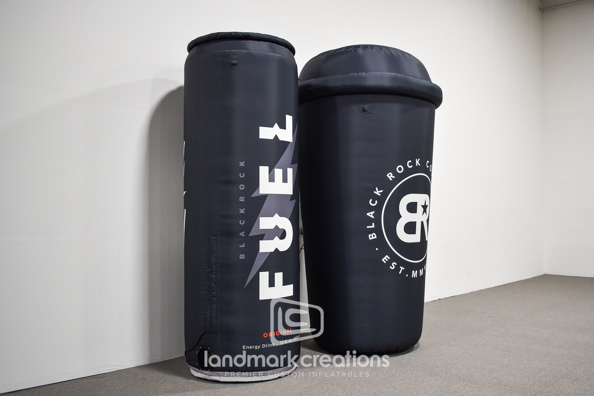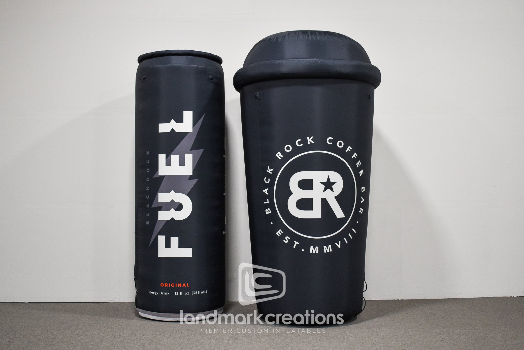 Black Rock Coffee created custom inflatable replicas of their branded coffee cup and Fuel energy drink to promote their brand at special events and product samplings. Custom inflatables make great photo opps and they're easy to transport between events.