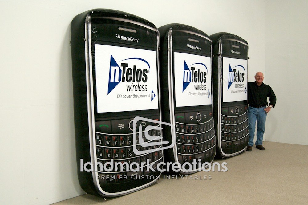 Inflatable product replicas, like these 8-foot blackberry tours, grab attention and peak interest during retail promotions.