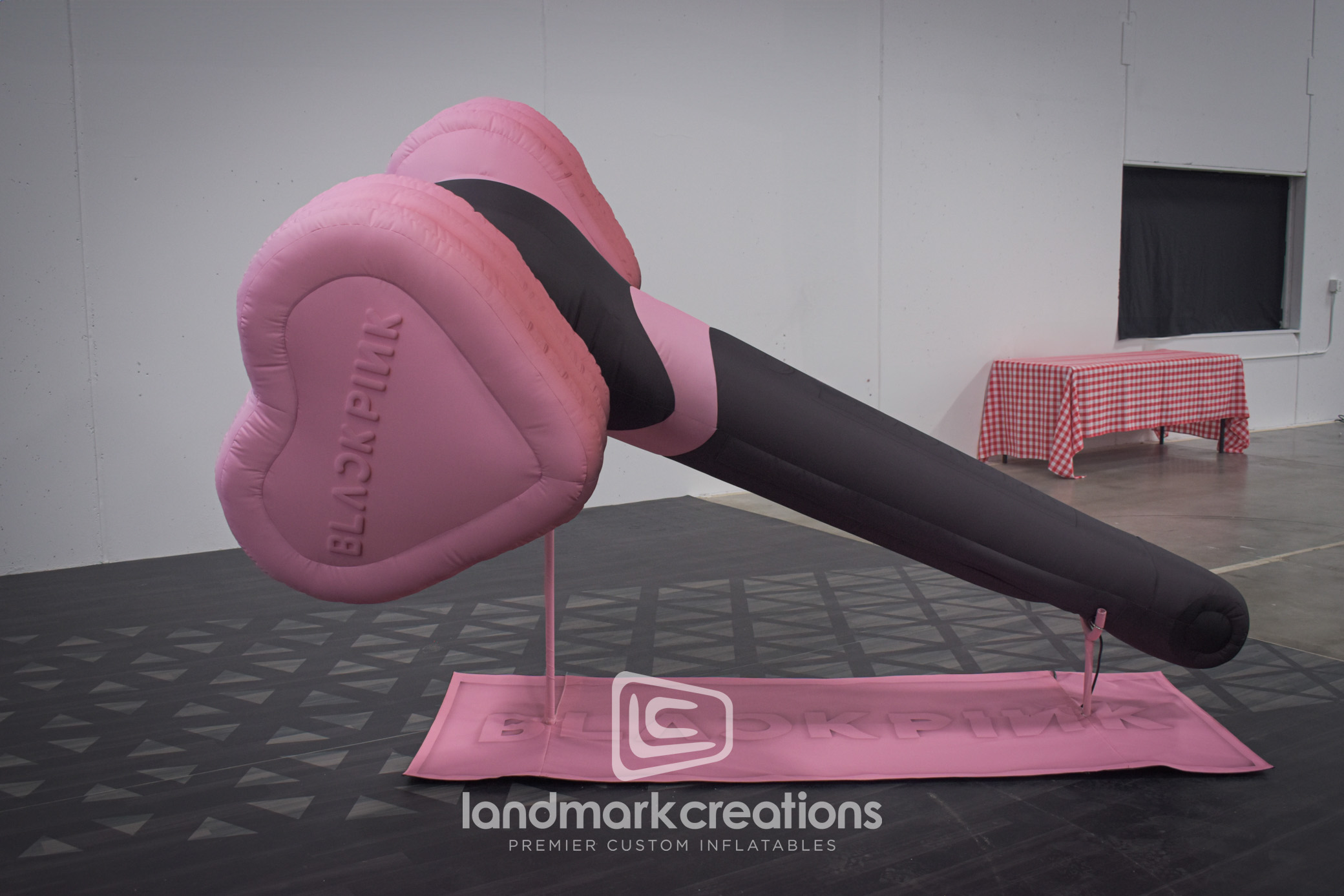 Landmark Creations partnered with AEG Presents to create an 8-foot custom inflatable replica of the iconic BLACKPINK light stick. Featuring bright LED lighting and designed for stage production, this eye-catching display was crafted for the band's concert tour. It serves as both a removable prop and an overhead visual, making it a versatile piece for any stage or event setting. This inflatable highlights our ability to bring fan-favorite merchandise to life, providing engaging visuals for live performances.