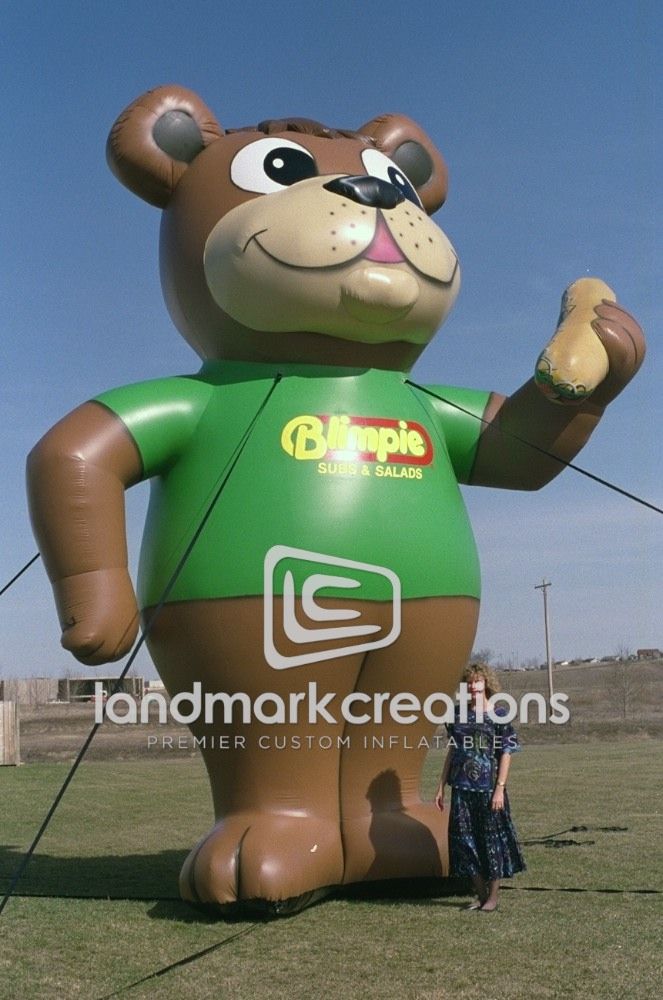 Inflatable mascots, like this 20' giant bear made for Blimpie Restaurants gets serious attention and helps increase sales when placed on a rooftop or near store locations.