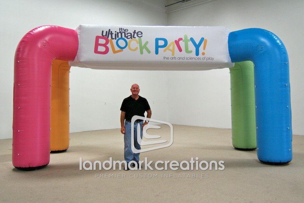 The colorful design of this inflatable archway draws attention and directs visitors to the entrance of The Ultimate Block Party events.