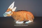 Who could resist the sweet eyes for the Virginia Zoo's inflatable bongo replica? The custom bongo display is featured in a set of two-dozen endangered species on display for the zoo's "Zoolumination" outdoor event.