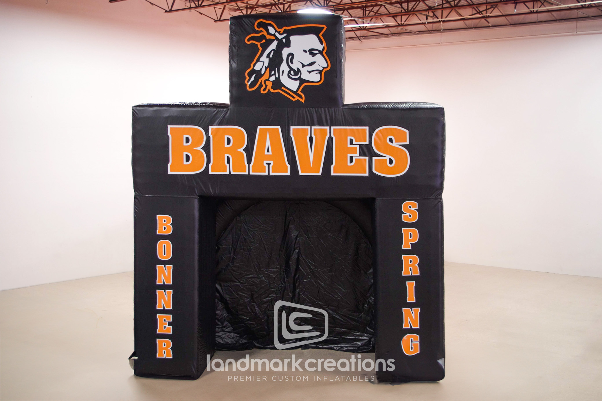 The Bonner Springs Braves Tunnel is a custom inflatable designed to energize players and fans alike. Perfect for school sporting events, this inflatable tunnel serves as an exciting gateway for teams to make their grand entrance, boosting team spirit and audience engagement.