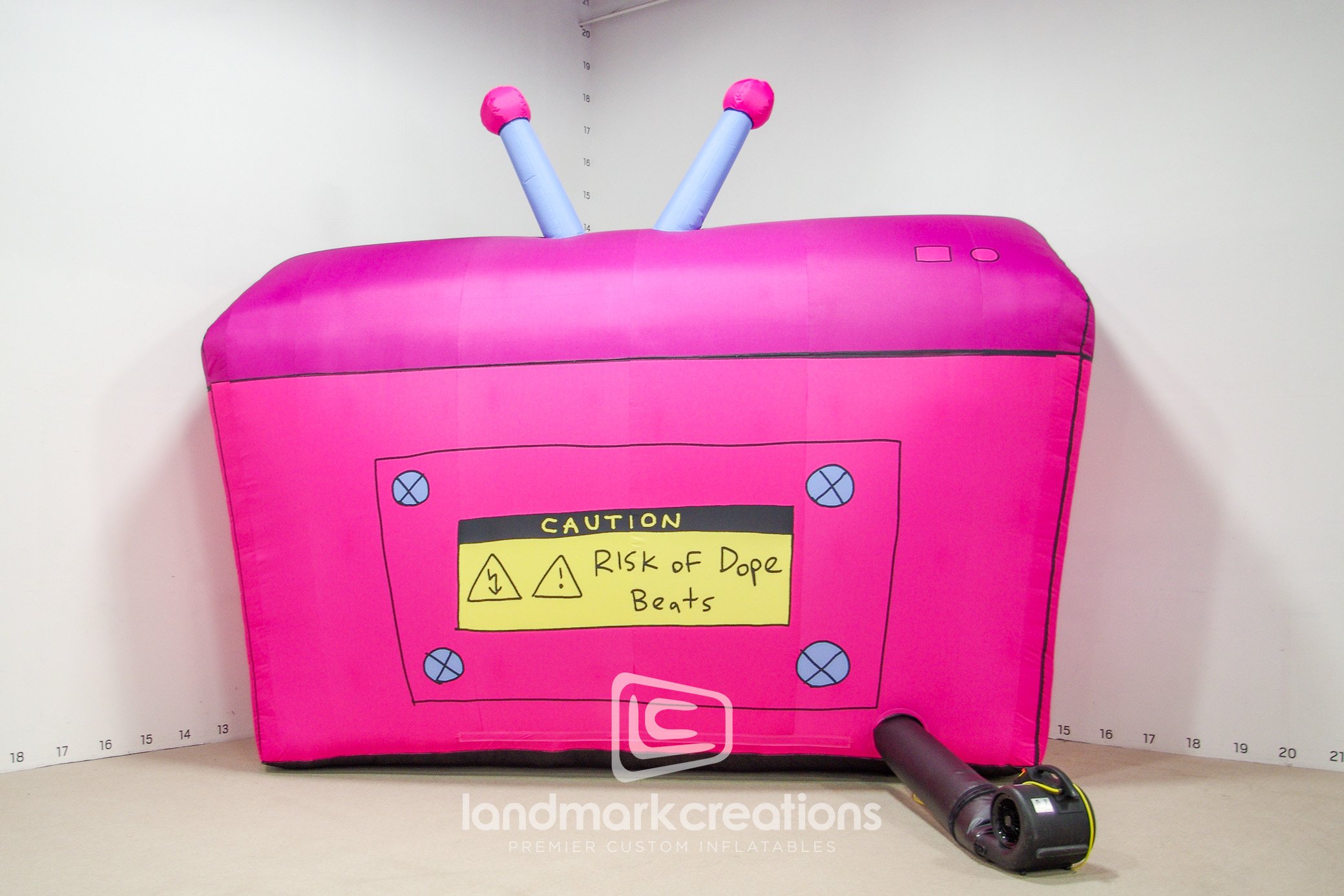 The whimsical graphics and bright colors of SunSoaked's inflatable boombox display add to the excitement and beach day vibe for guests at the music festival. Because they pack easily and create instant visuals, custom inflatables are a perfect fit for events & festivals.