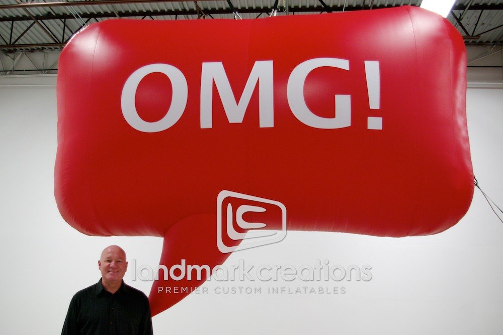 Brian Kane's inflatable OMG! created a flurry of attention at a recent marketing event. Custom inflatable speech bubbles are fun and show your creativity. They can be used at trade shows and company events, for interactive marketing, and much more!
