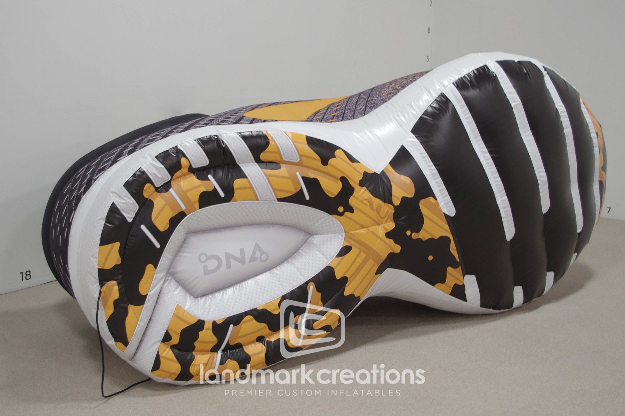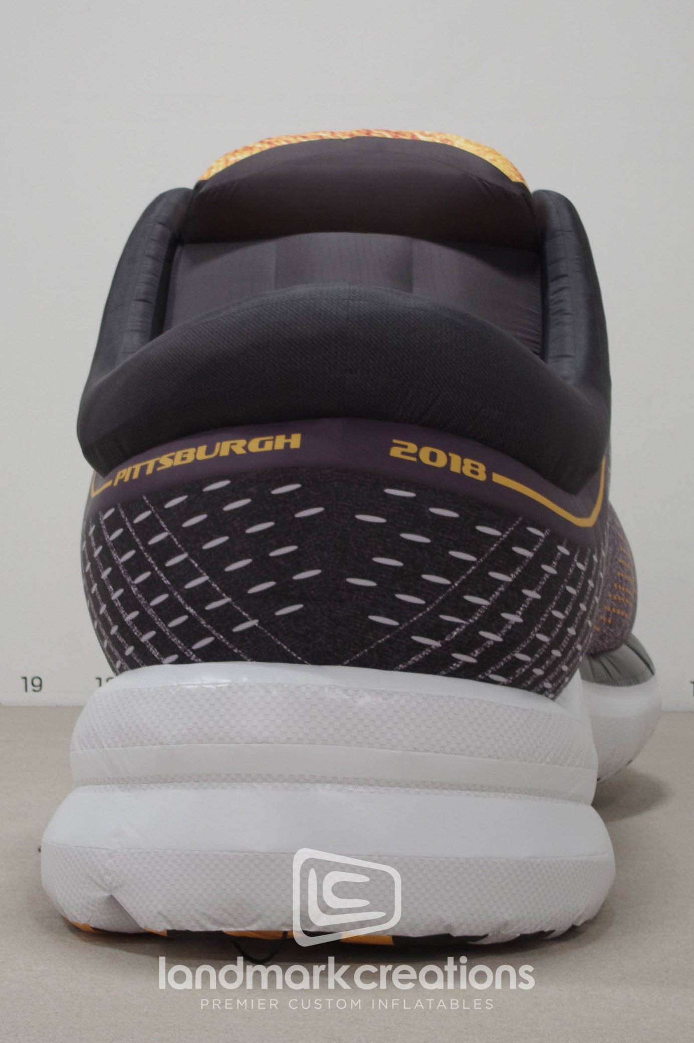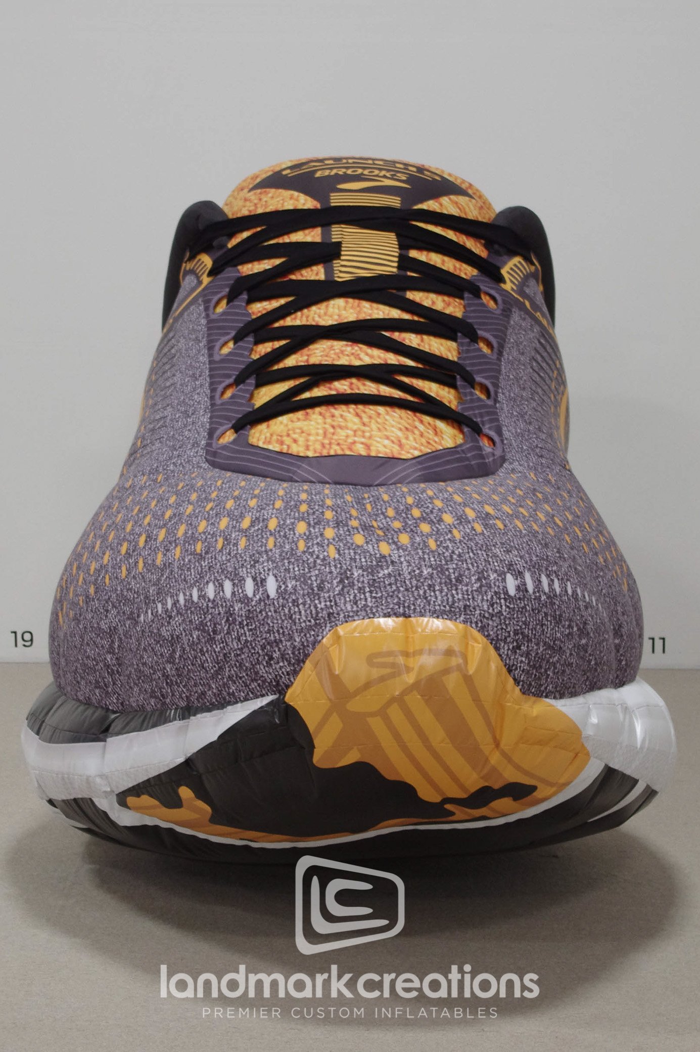 Realistic texture detail on this giant inflatable running shoe replica helps Brooks showcase new styles at running events & races.