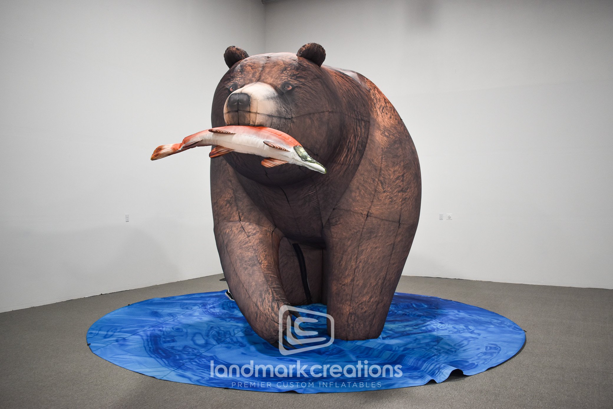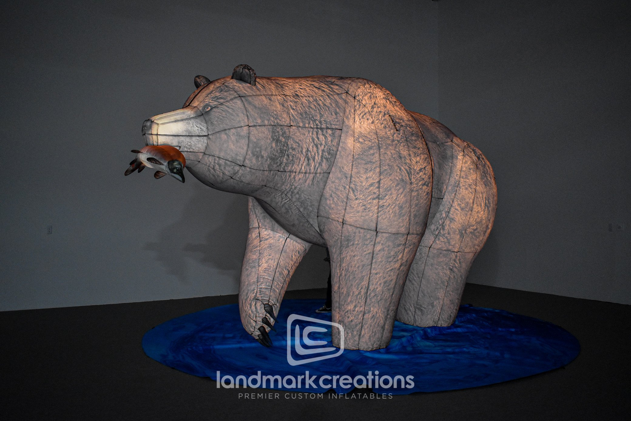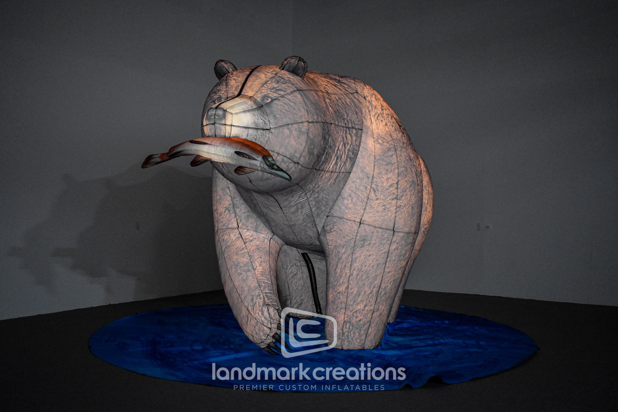Striding across a pool of water while toting a salmon, this giant brown bear display charms guests at the Minnesota Zoo's outdoor exhibit, "Nature Illuminated". Inflatable wildlife displays can be created with detailed textures and internal light systems, making them proven performers for events that require a high degree of realism during the day or at night.