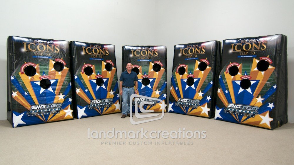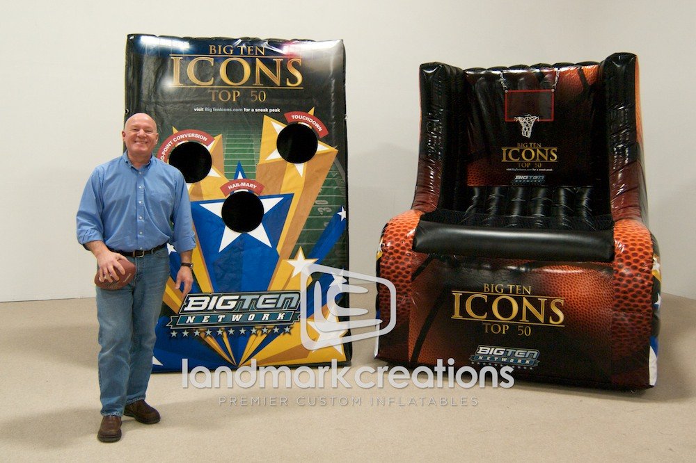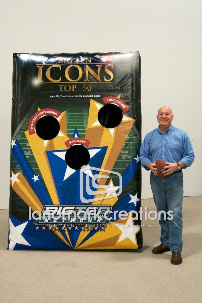 Looking for a way to engage fans at sporting events? The Big Ten Network uses inflatable football tosses to promote their sports network during pre and post-game events.