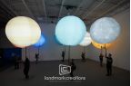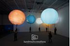 Kpop band BTS created a custom inflatable solar system to be used on stage for their performance of the song "My Universe" which they performed with the band Coldplay. The inflatable planets were internally lit and moved in "orbtis" by performers who suspended the giant orbs using a harness and pole system. Collectively, the glowing inflatable spheres dancing across the stage created an ethereal visual on tour.