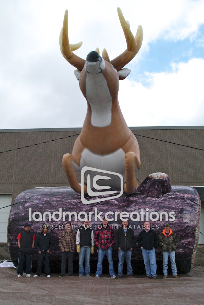 This giant inflatable buck means business! Custom-designed for Cabela's, a sporting goods and hunting supply retailer, this inflatable announced a grand opening event and is also used to attract attention during deer hunting season.