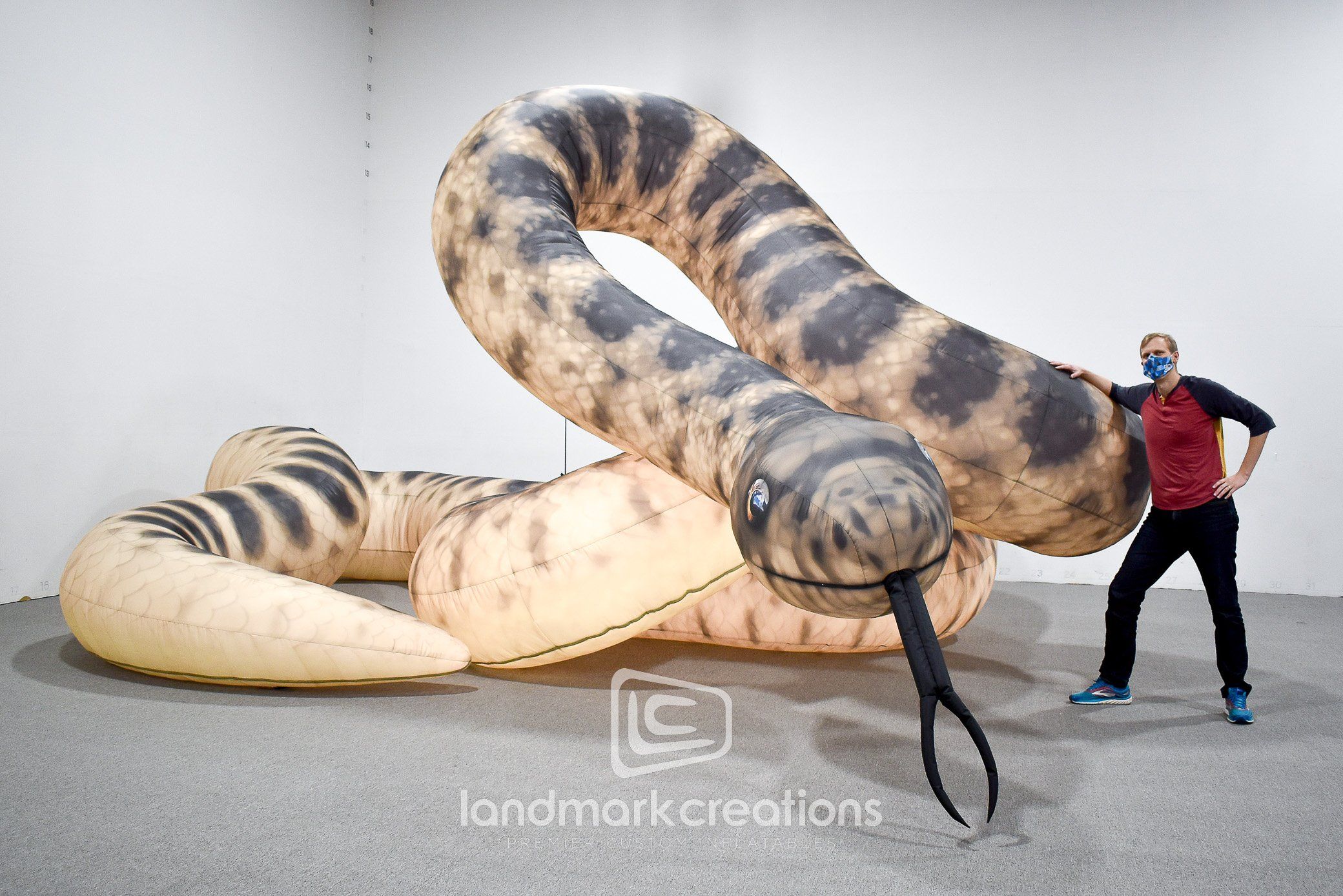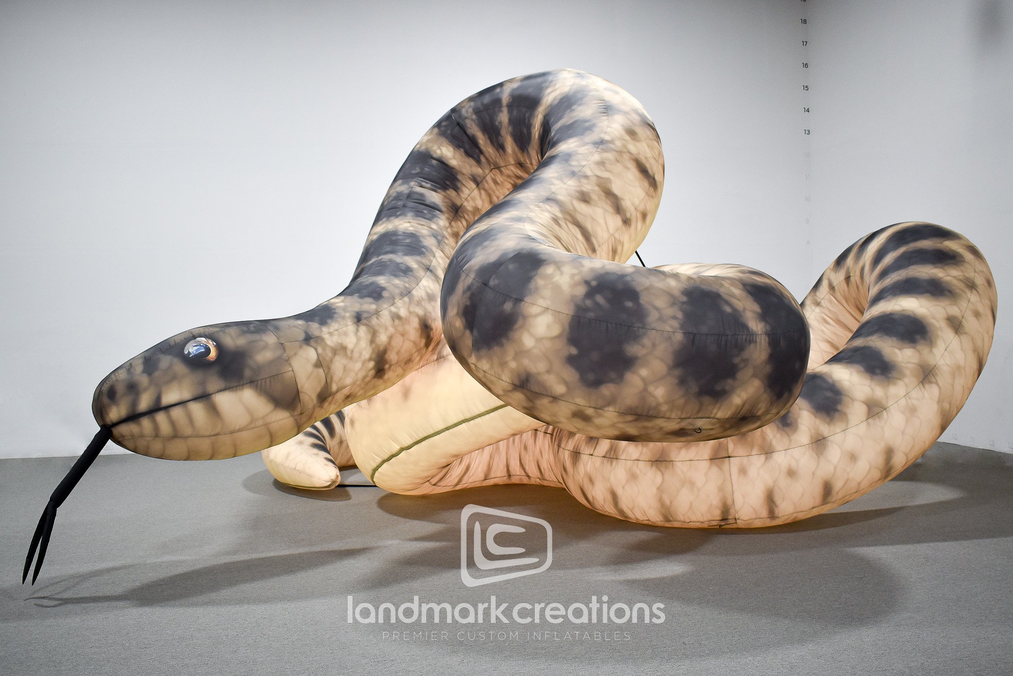 With its massive coils, the Minnesota Zoo's giant inflatable bull snake replica creates a truly stunning visual, especially when it's lit up at night. The bull snake is part of the zoo's collection of over 30 giant displays of endangered species created for their "Nature Illuminated" outdoor event.