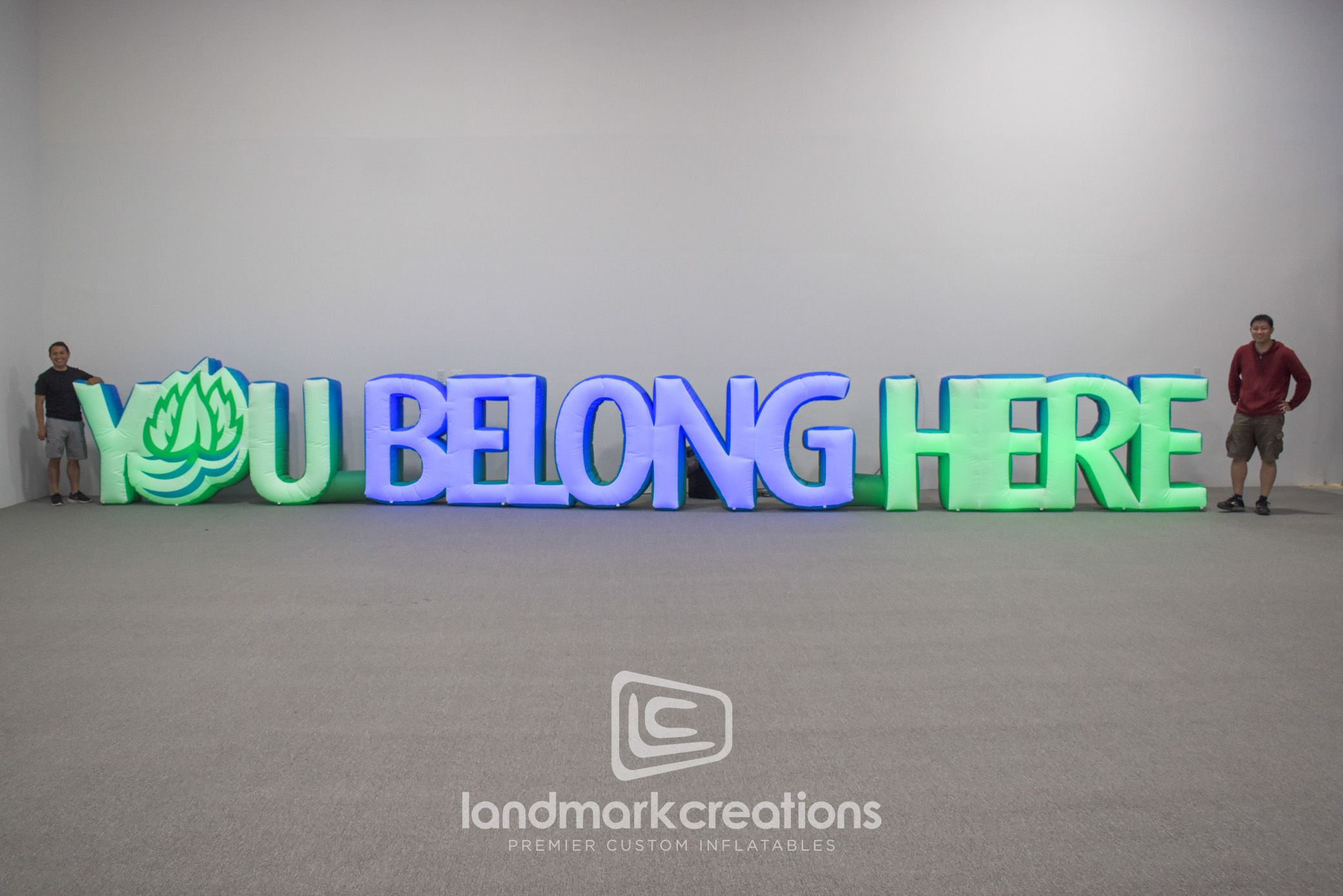 The Burnsville City "You Belong Here" Billboard was designed to make a bold statement at outdoor events. This custom inflatable, created for AE2S, embodies the welcoming spirit of Burnsville, MN, highlighting its city slogan with impressive clarity and visibility. Positioned at ground level, it captures the attention of passersby, making it perfect for high-traffic public gatherings. Its size and design make it an ideal choice for city branding and community outreach.