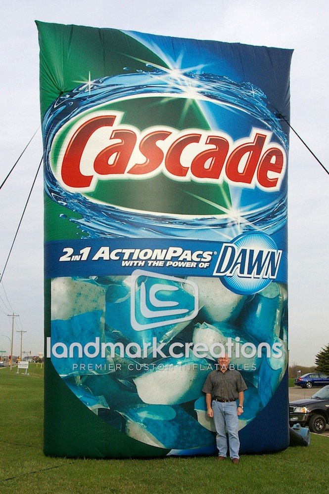 Vibrant colors and impressive size 25-feet tall contribute to this balloon's ability to capture attention at far distances and in large crowds. The graphics were meticulously reproduced to be identical to the package customers find in stores. The familiarity of this inflatable helps onlookers make an immediate and lasting connection.