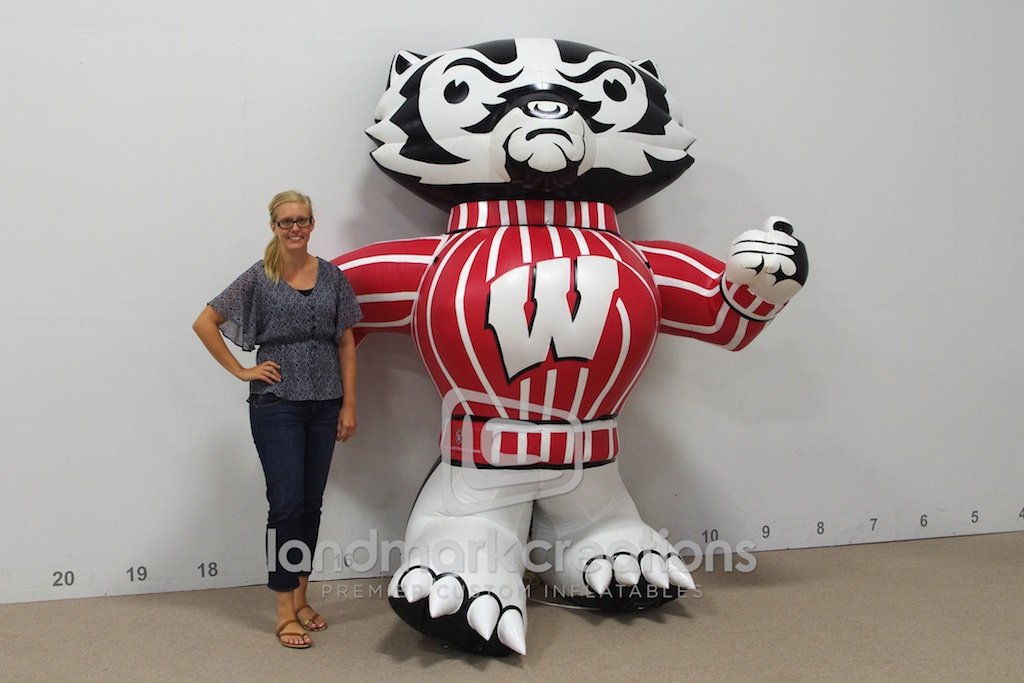 The University of Wisconsin-Madison's Campus and Visitor Relations office purchased this inflatable Bucky mascot to attract attention at a variety of events. The Bucky Badger is complete with a CAVR logo on his hip!