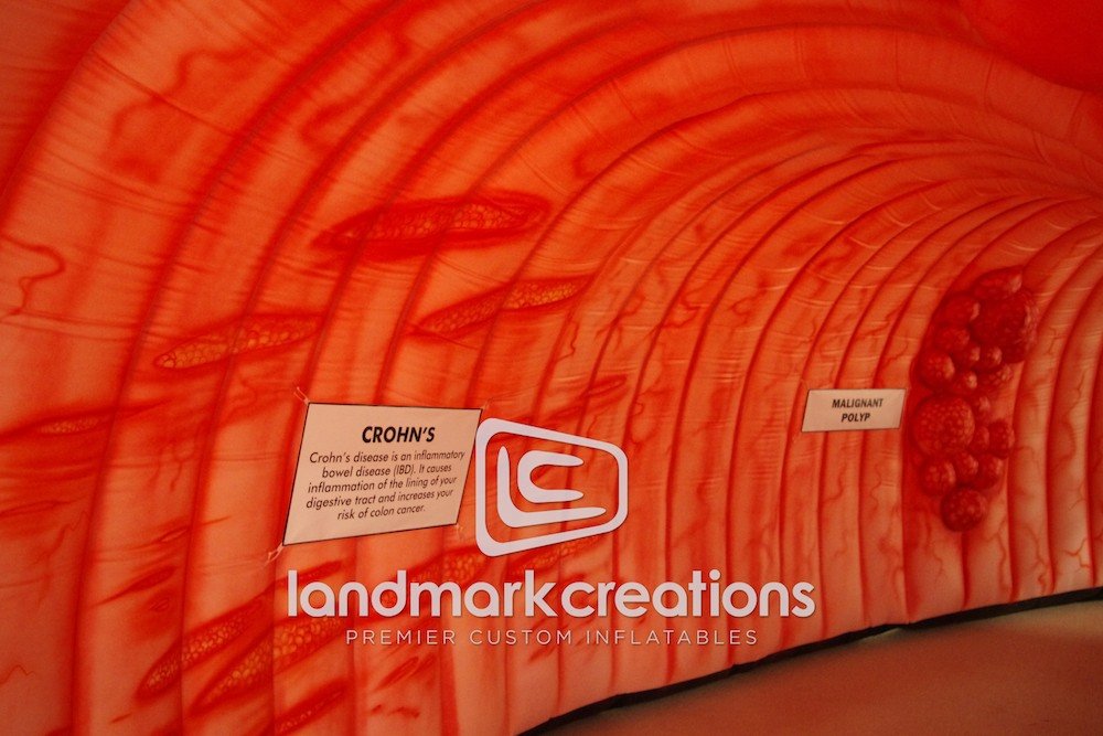 This inflatable colon designed for the Center for Rural Health sparks conversations and increases colon cancer awareness at community events and exhibits. With descriptive banners placed next to disease replicas, people can easily view colon health issues.