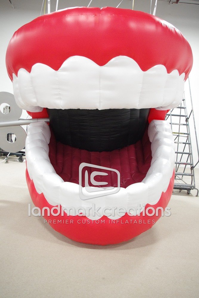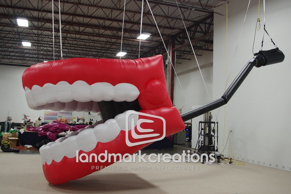 MS Entertainment suspended this inflatable chattering teeth prop on stage at the Theater at Madison Square Garden for the Garden of Laughs, a charity event starring some of the biggest names in comedy.