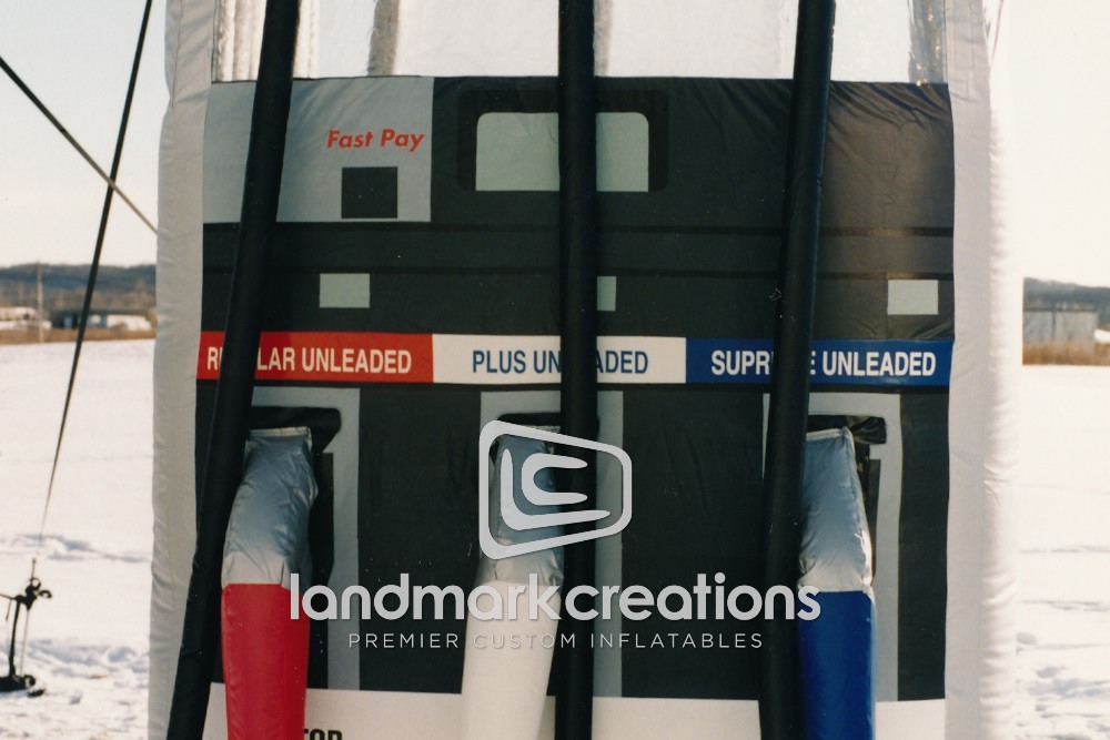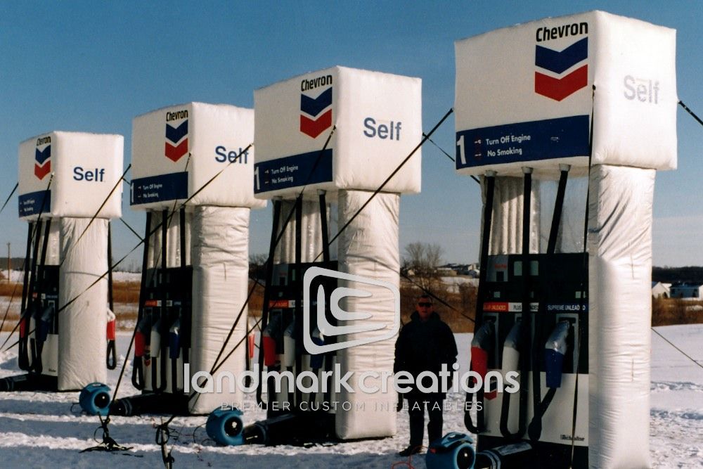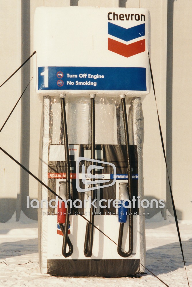 Want a creative way to increase traffic at your petroleum station or convenience store? Chevron dealerships inflate these giant gas pump replicas to increase brand awareness at marketing events.