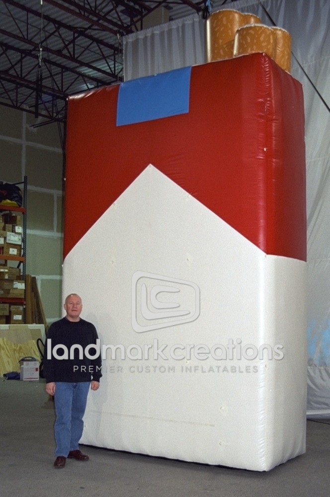 Looking for a way to gain media attention? Giant custom inflatables, like this cigarette pack designed to mock the Marlboro brand in protest, help increase attention from news stations and print publications.