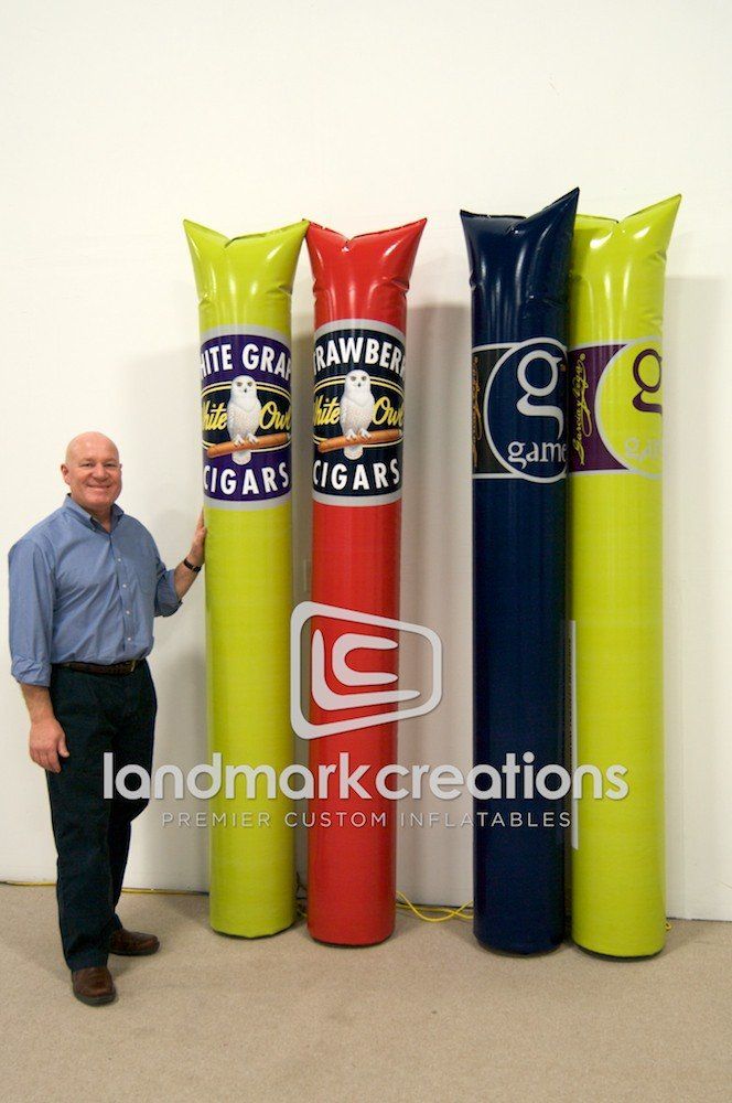 White Owl Cigars generates consumer interest with inflatable product replicas of their American-made cigars. Inflated at retail locations and convenience stores, these colorful cigars influences consumers to purchase their products.