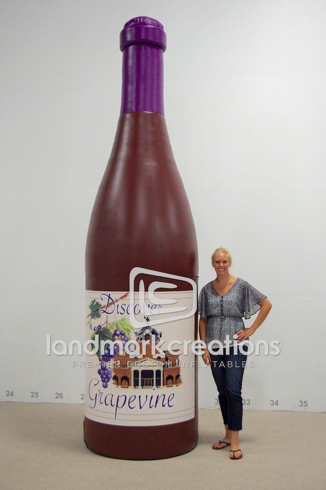 The City of Grapevine, host of the annual GrapeFest, purchased inflatable wine bottles with their event logo to welcome visitors to the largest wine festival in the Southwest. Designed with a solid base and internal fan system these sleek inflatable wine bottles were a great addition to the event!
