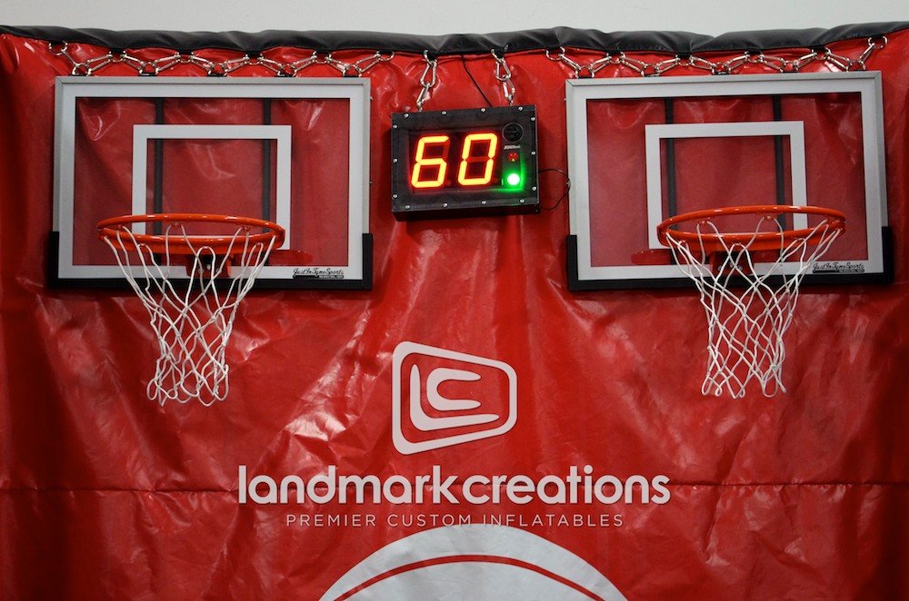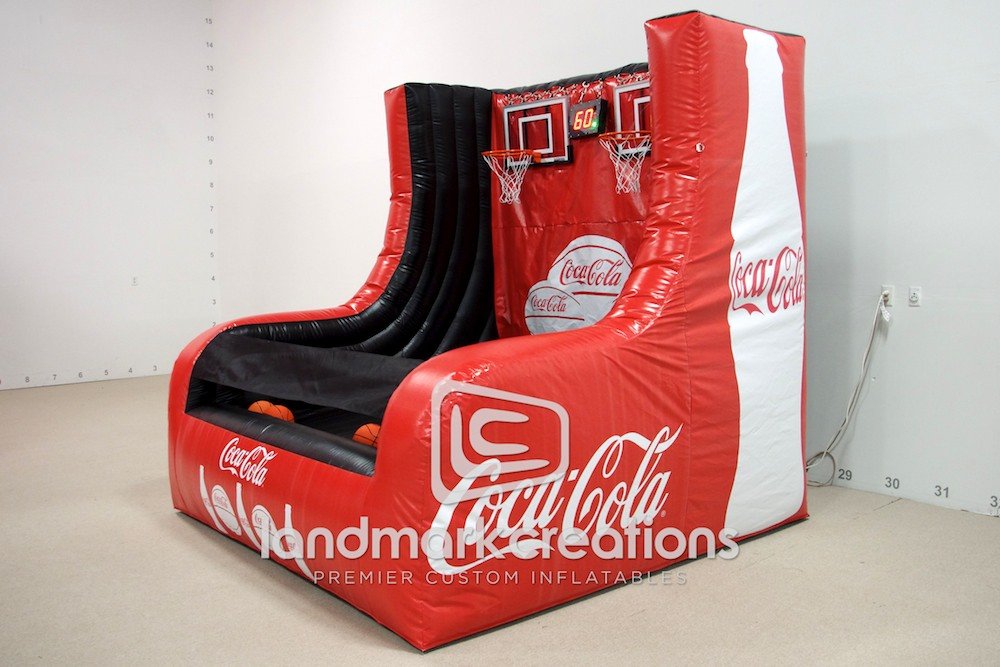 Coca-Cola increases crowd participation and adds excitement to sporting events with this Coke-branded inflatable dual basketball toss.