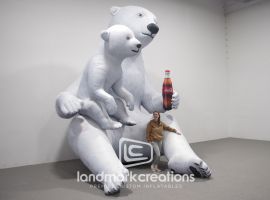 For the Fun Food Expo, Dedica Group introduced a 12-foot custom inflatable Coca-Cola polar bear mascot. Designed with Coca-Cola’s signature scarf and glass bottle, this standing character display became a bold visual centerpiece on the trade show floor. The inflatable created instant brand recognition, encouraged photo opportunities, and offered a memorable way to engage attendees in a busy exhibit environment.