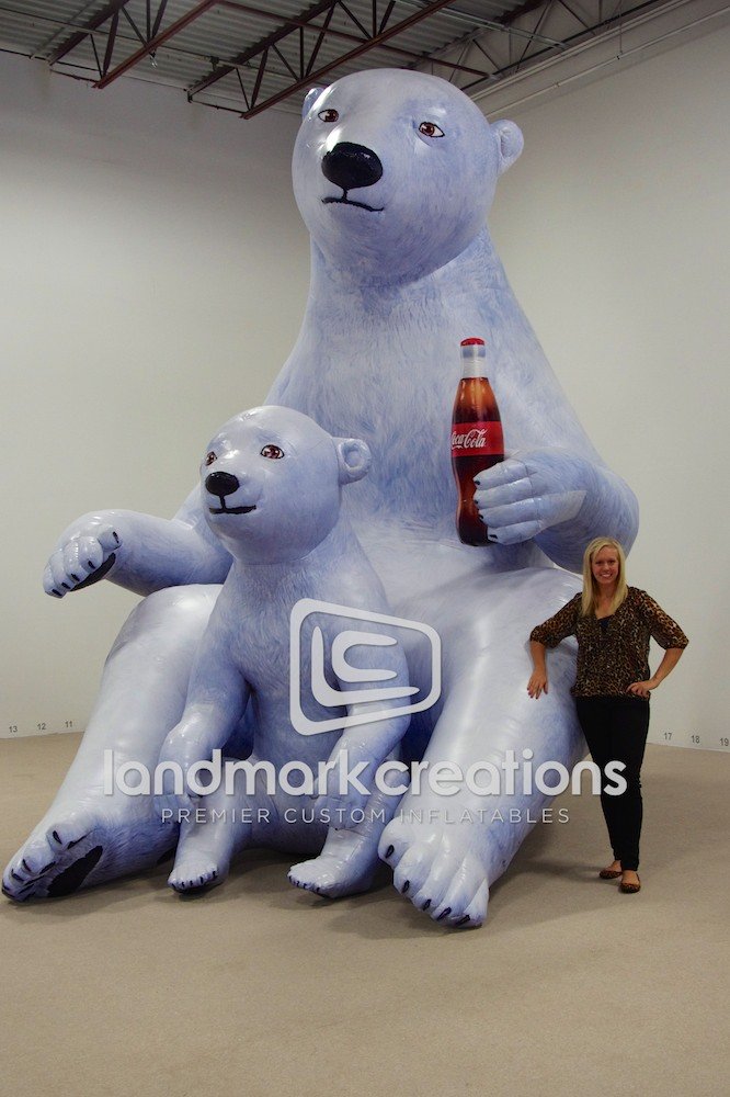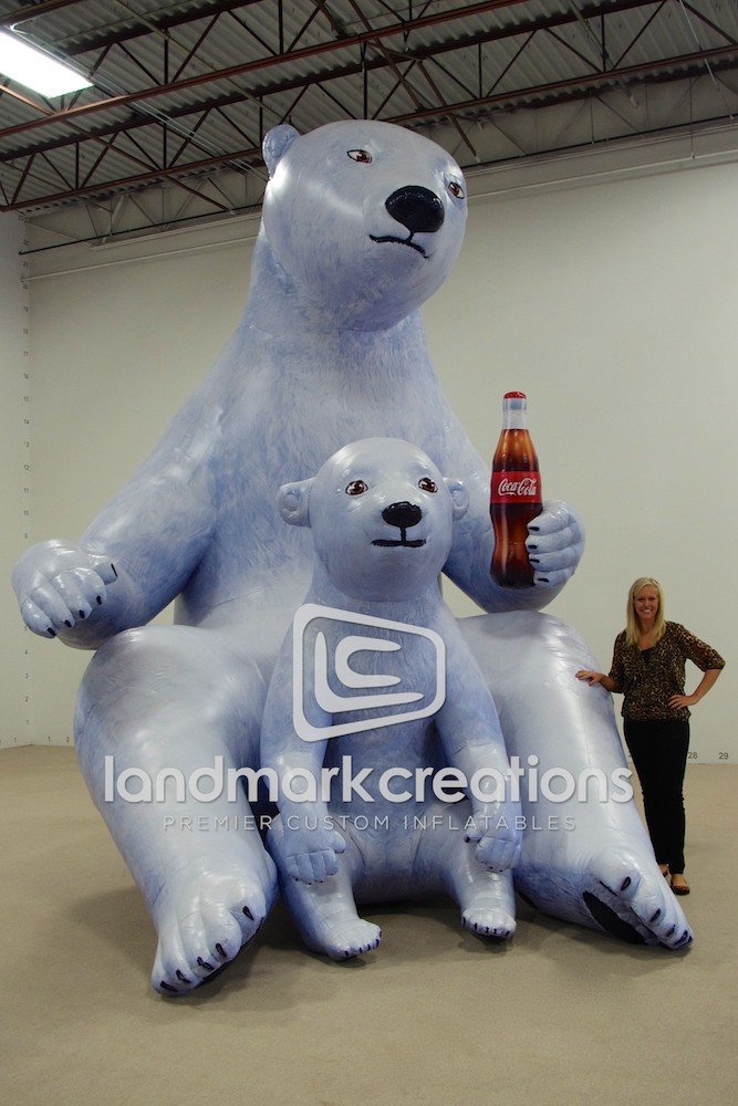 SeaWorld Parks display these highly detailed inflatable Coca-Cola polar bear and cub characters during the holiday season! The inflatable polar bears serve as fun photo opportunities for visitors.
