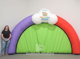 Cocomelon is a popular children's entertainment company that produces educational videos and music for young audiences. In 2022-2023 launched a live tour called "JJ's Journey," featuring live performances of their popular songs and characters. This giant inflatable proscenium was created to add an extra layer of excitement and engagement for young audiences and frames the live stage sets to create a fully-branded visual.