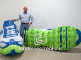 Shiraz Creative, a leading agency in immersive brand experiences, collaborated with Landmark Creations to bring a bold marketing vision to life. This giant inflatable shoe replica, featuring teal and white accents and precise logo placement, captured attention at a retail activation in New York. Designed to spark buzz and create memorable moments, this 20-foot-tall custom inflatable is a striking example of how brands can use oversized replicas to drive engagement and generate excitement. Discover how Landmark Creations transforms concepts into impactful marketing tools that elevate your brand presence.