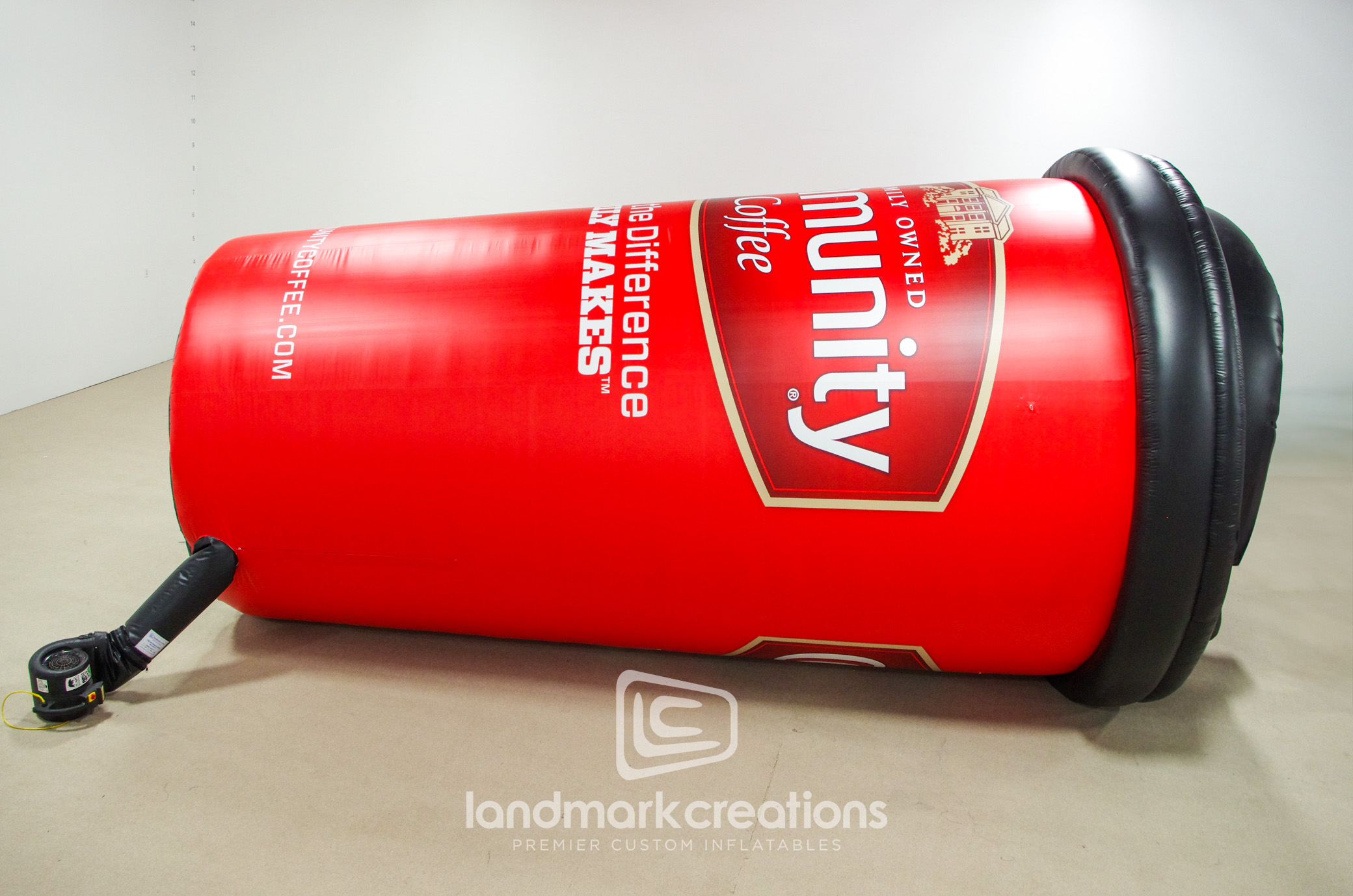 The Community Coffee Cup inflatable is a giant replica designed to attract coffee lovers. Whether used at festivals, trade shows, or in-store promotions, this attention-grabbing inflatable promotes your brand and delights attendees.