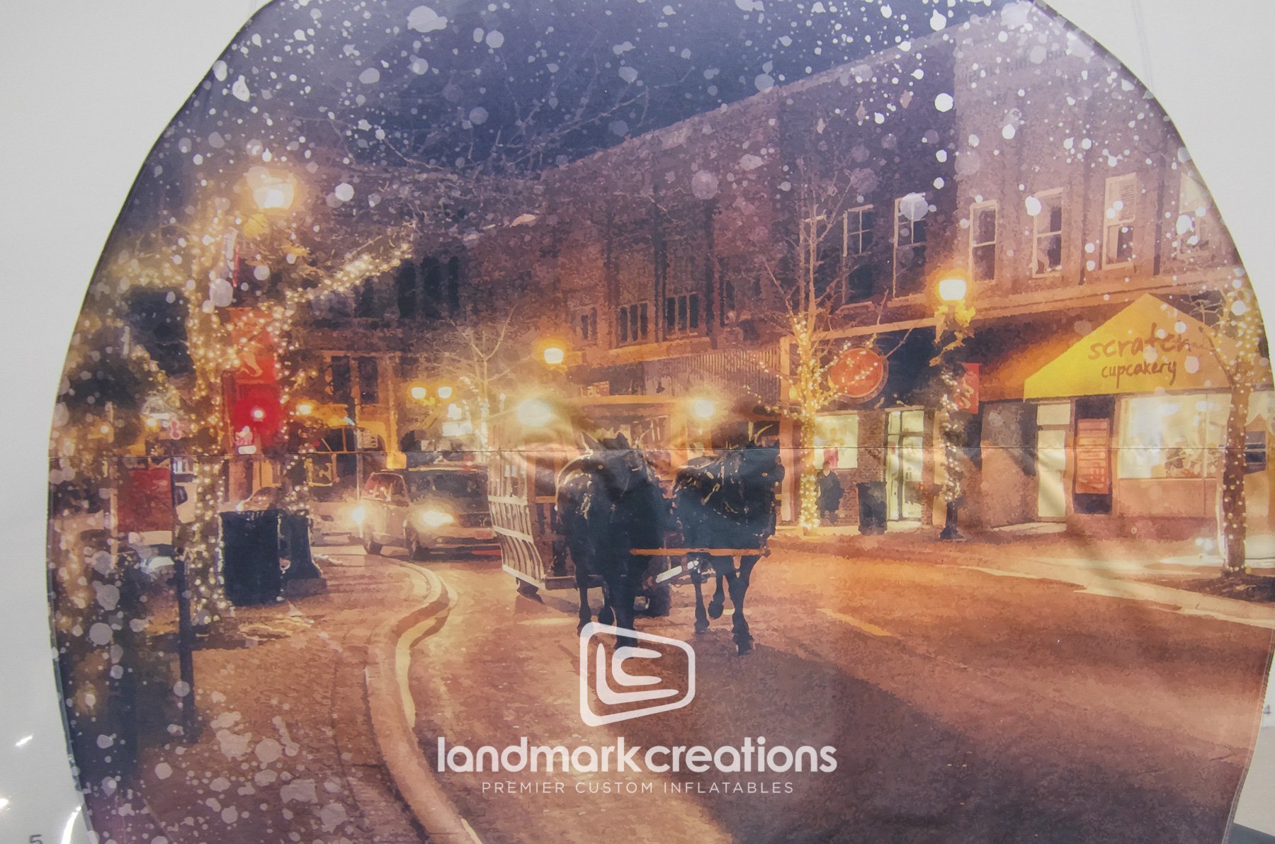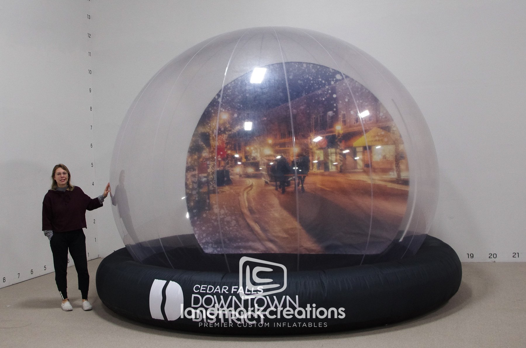 This inflatable snow globe was used at Community Main Street’s Holiday Hoopla parade in Cedar Falls, Iowa. Featuring a Santa Claus accompanied by elves, this custom inflatable display was sure to get everyone in the holiday spirit.
