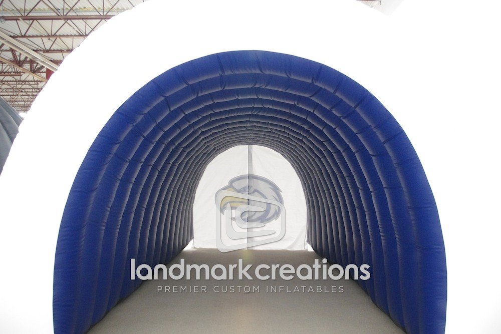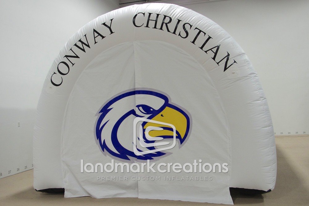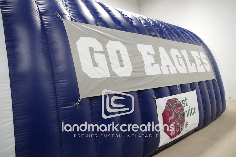 First Service Bank boosted team spirit in Conway Christian School's Eagle fans and athletes by purchasing this custom inflatable football tunnel. Inflatable tunnels are easy to set up, take down, and store for repeated use.