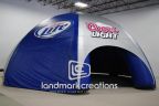 Custom-designed inflatable tents offer both shade and advertising for beverage companies during outdoor events and concerts.
