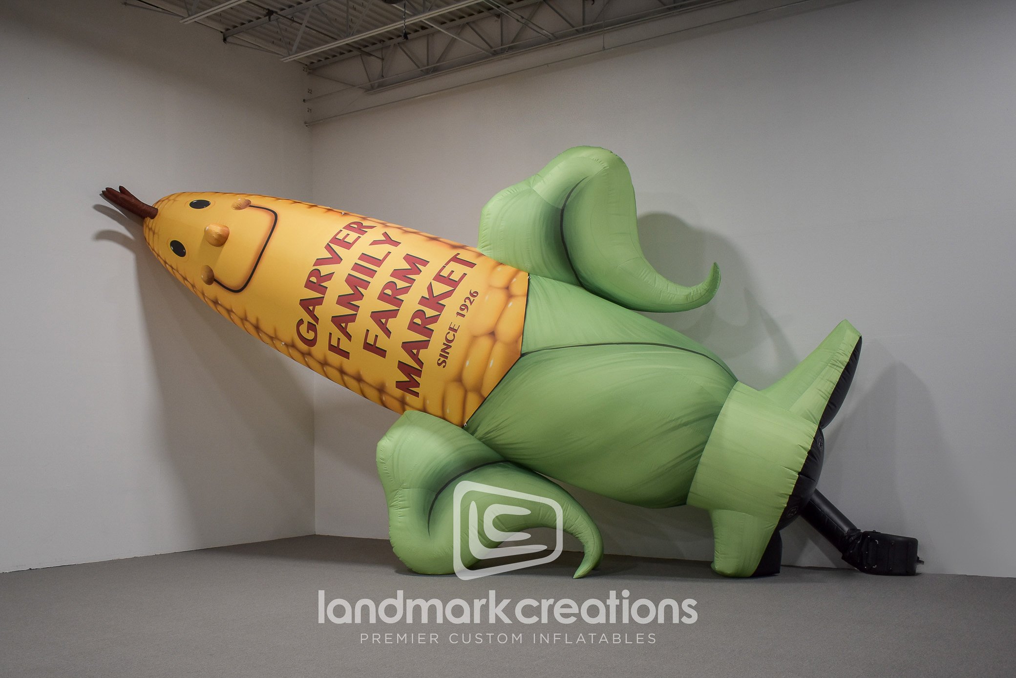 The giant inflatable "Cornelius"corn cob mascot drives buyers to purchase fresh, seasonal produce from the Garver Family Farm Market. Custom inflatable mascots create giant visuals that will drive traffic to your location, and they pack small so they're easy to store and transport between events.