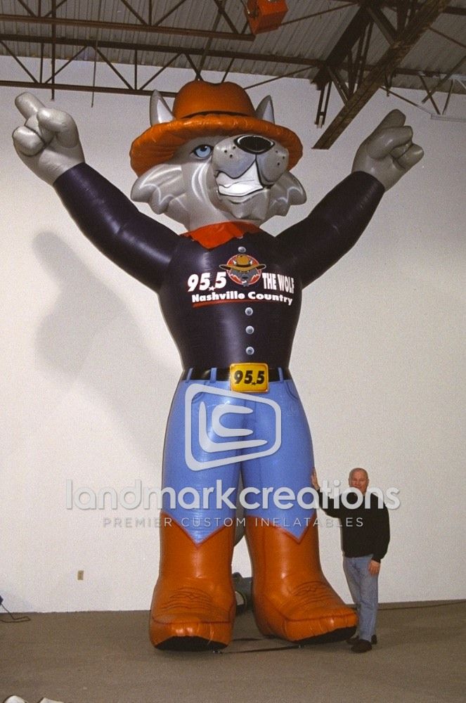 Mascots help make a brand visible and something as memorable as 95.5 The Wolf's mascot is perfect for inflating. Who can miss this 20-foot inflatable wolf mascot?