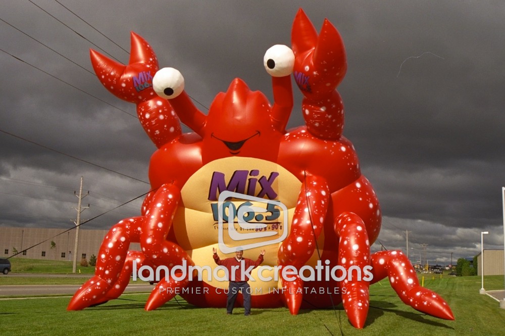 Baltimore's radio station, Mix 106.5, inflates this giant crab character to advertise at a variety of marketing events.