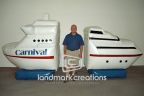 Carnival Cruise uses their inflatable cruise ship prop to welcome vacationers on board during a stage production. Inflatable stage props are perfect for traveling shows and mobile entertainment. Easy to inflate, deflate and a breeze to pack.