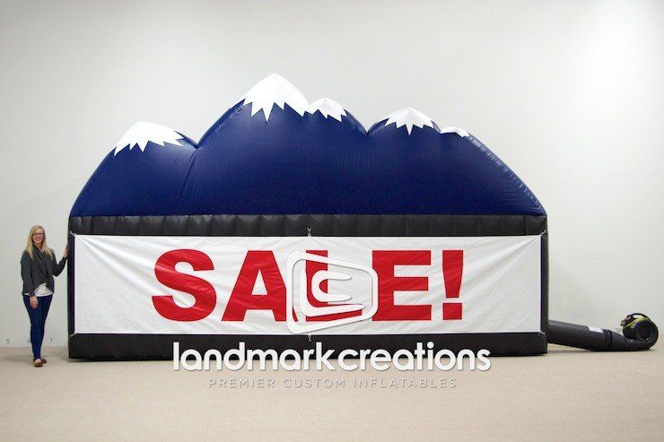 This inflatable logo for Denver Mattress Company is used during retail promotions to attract attention and increase sales! The interchangeable banner on the front of the inflatable is perfect for customizable messaging.