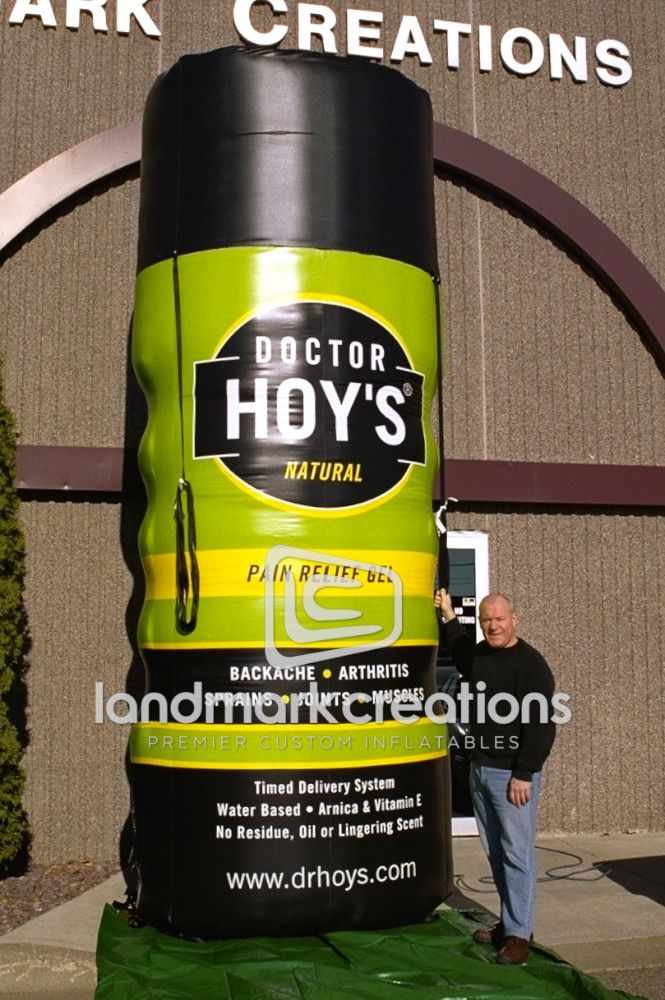 DOCTOR HOY'S Natural Pain Relief Gel was turned into a giant inflatable product replica to promote healthy pain management at iron mans, triathlons, marathons and cycling events.