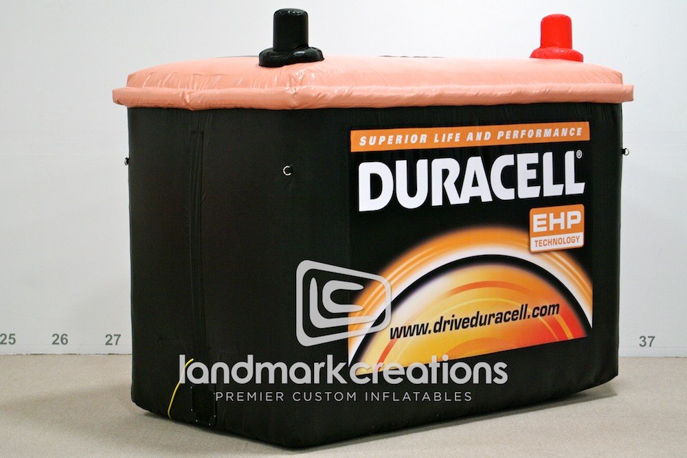 Duracell reinforces brand awareness for their EHP car batteries by inflating a 6' giant replica of the battery at trade shows and events.