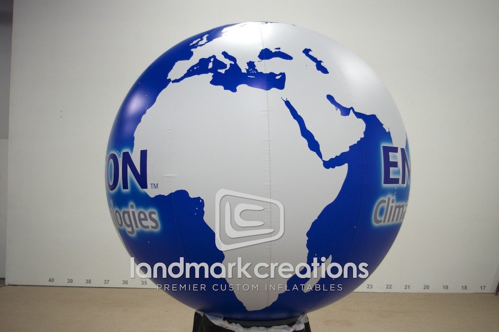 Emerson Climate Technologies, an energy efficient solutions company, displays their inflatable globe replica atop trade show booths. The globe is easy to pack and set up, and has been a useful advertising tool at Emerson’s Wholesaler Conference, AHR Expo, and China Refrigeration Expo.