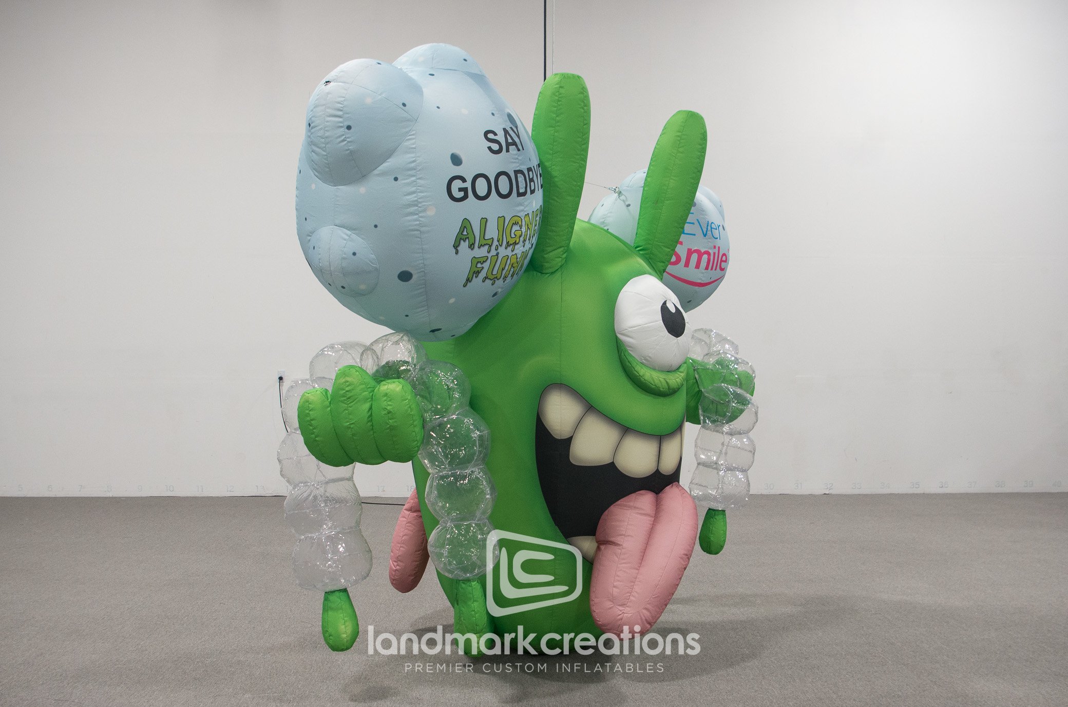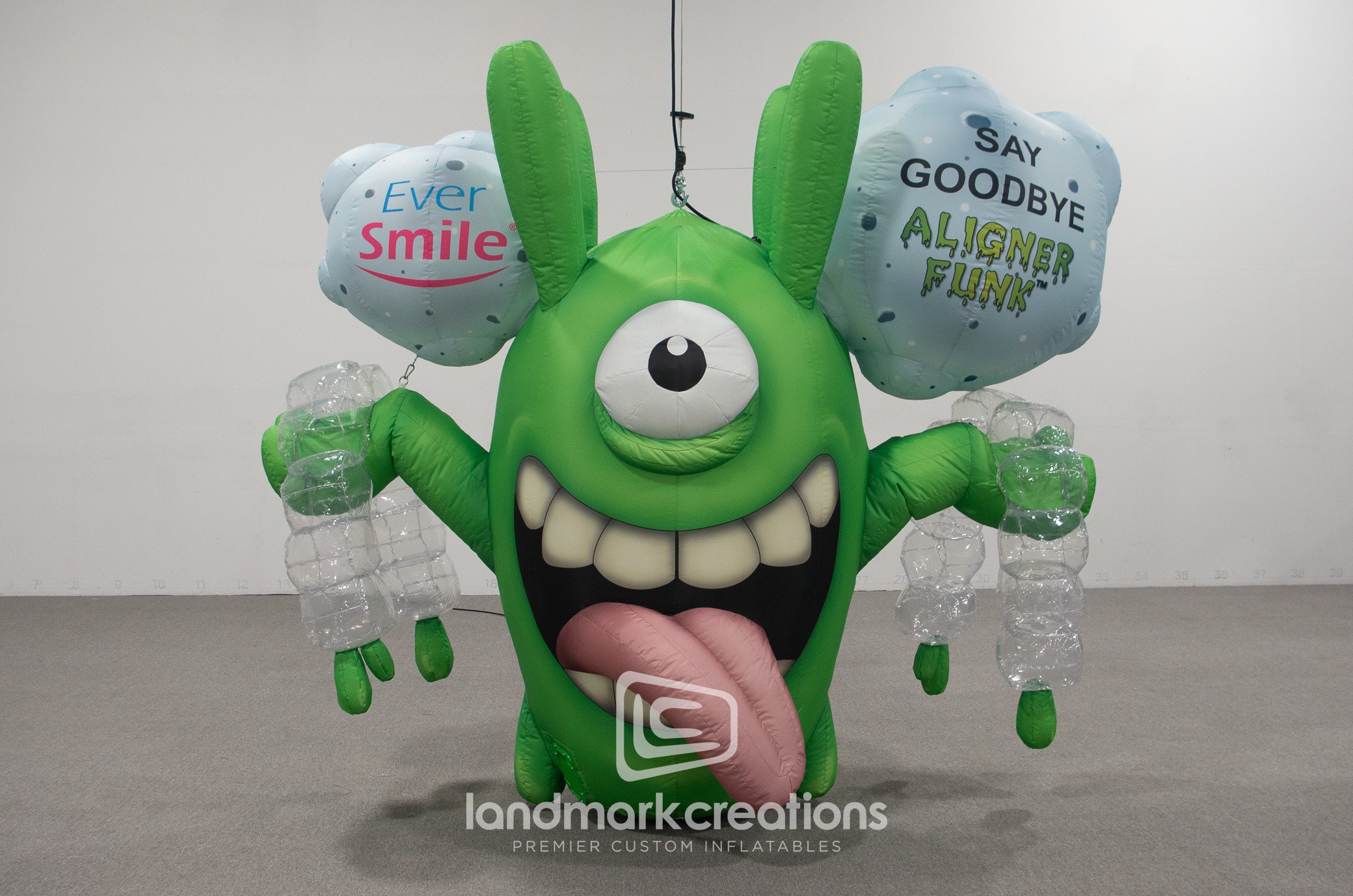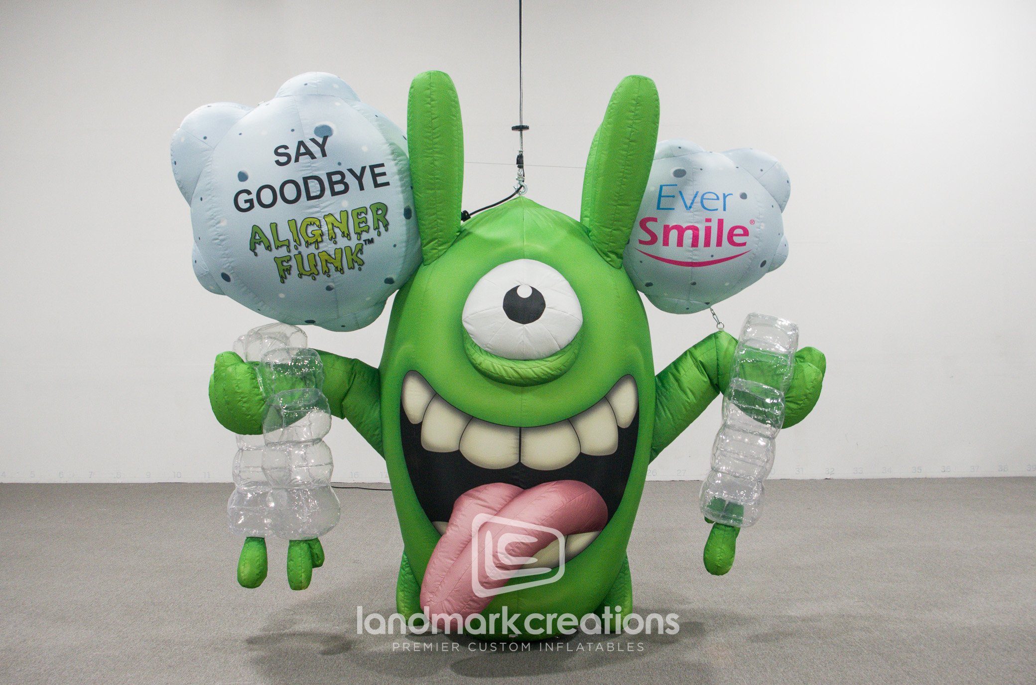 EverSmile, a Los Angeles-based dental company, created a custom inflatable mascot called "Aligner Funk" to use at events and shows, as an engaging way to educate customers about their WhiteFoam cleaning products and increase brand awareness Looking to create a memorable and engaging experience for your brand or product? Consider incorporating an inflatable costume or inflatable display of your brand mascot or character to attract crowds and provide fun photo opportunities.