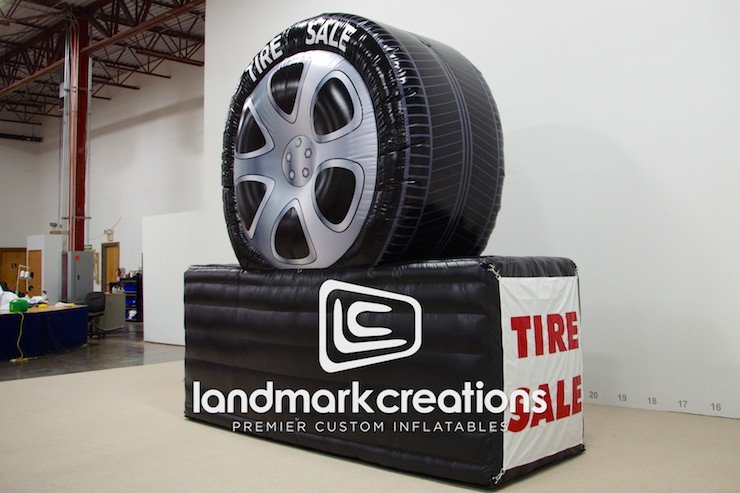 Looking for a creative automotive marketing idea? Try an inflatable tire billboard on for size! Custom inflatable signs like this help your business broadcast special offers and sales to those passing your location.