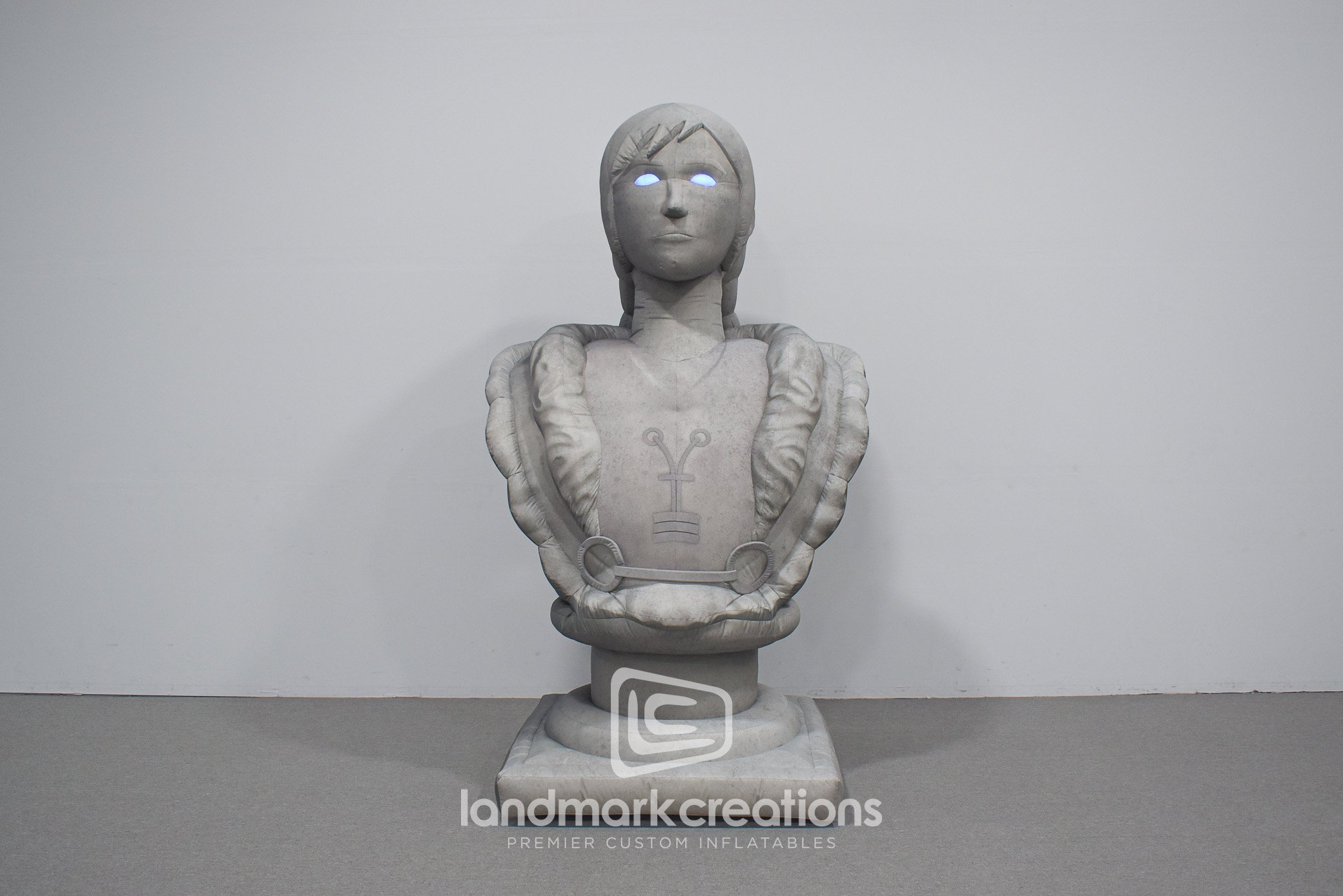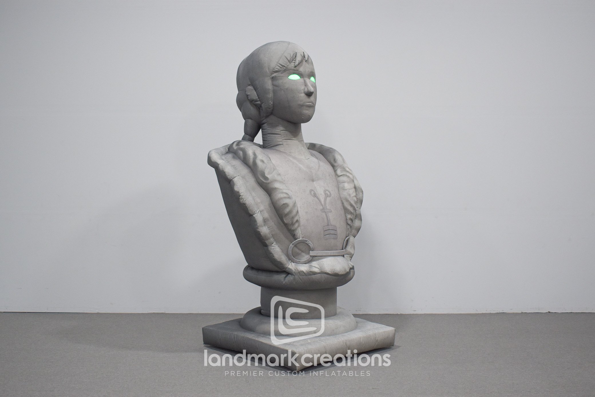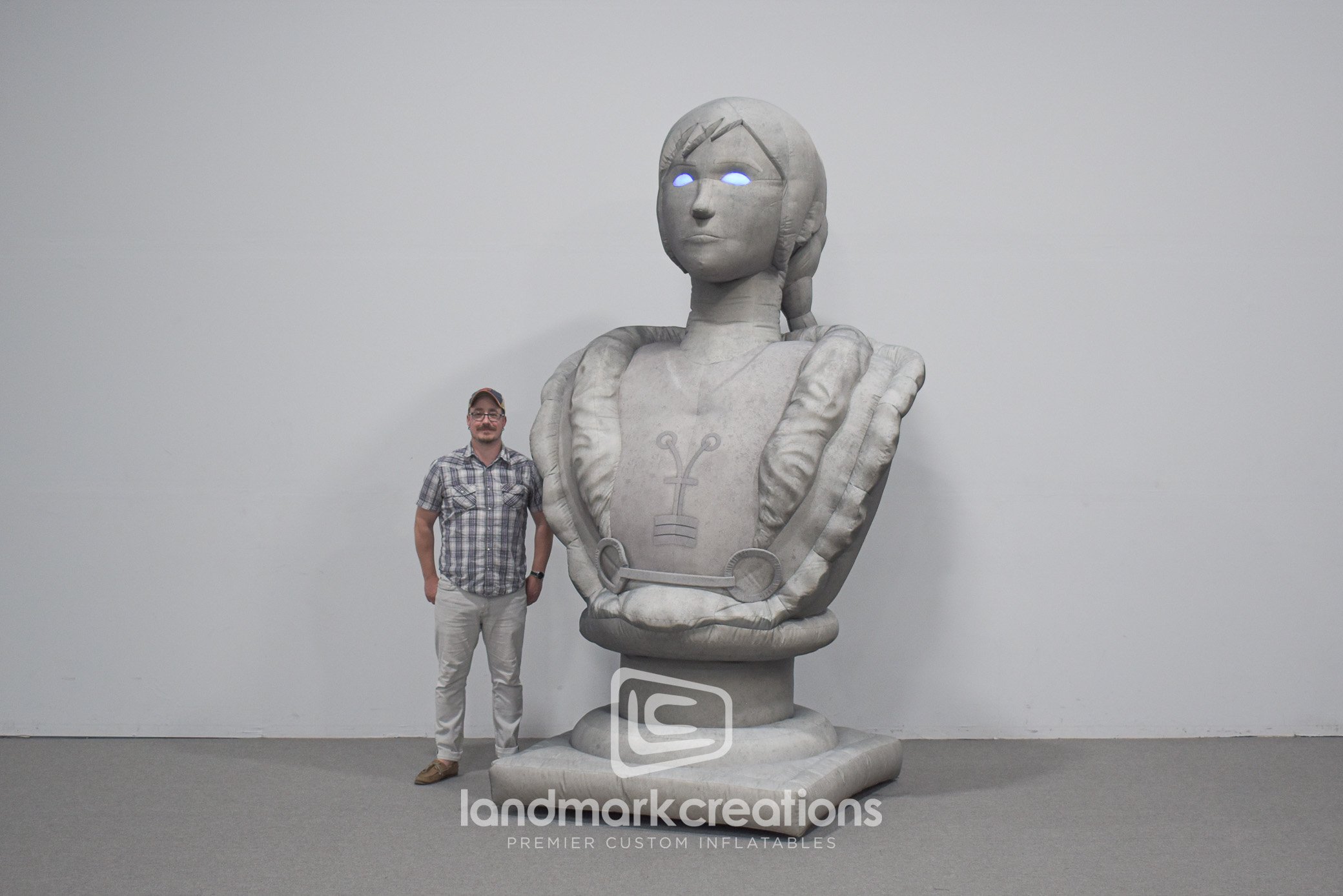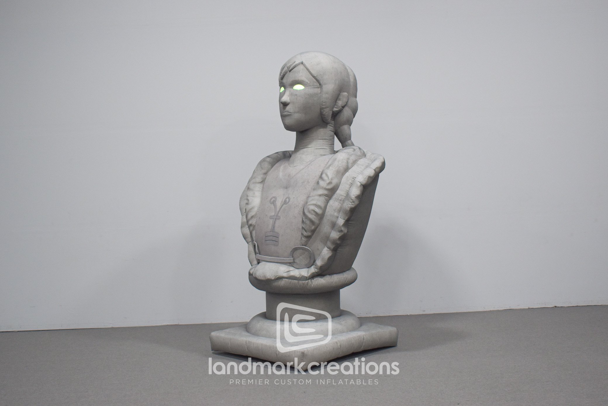 This giant inflatable marble bust of Faye Webster, complete with ruffled shirt, braids, and LED light-up eyes joins the Indie artist on stage for her "Car Therapy Sessions" tour. Custom inflatables are perfect touring stage displays because they make a big impact and pack easily between gigs.
