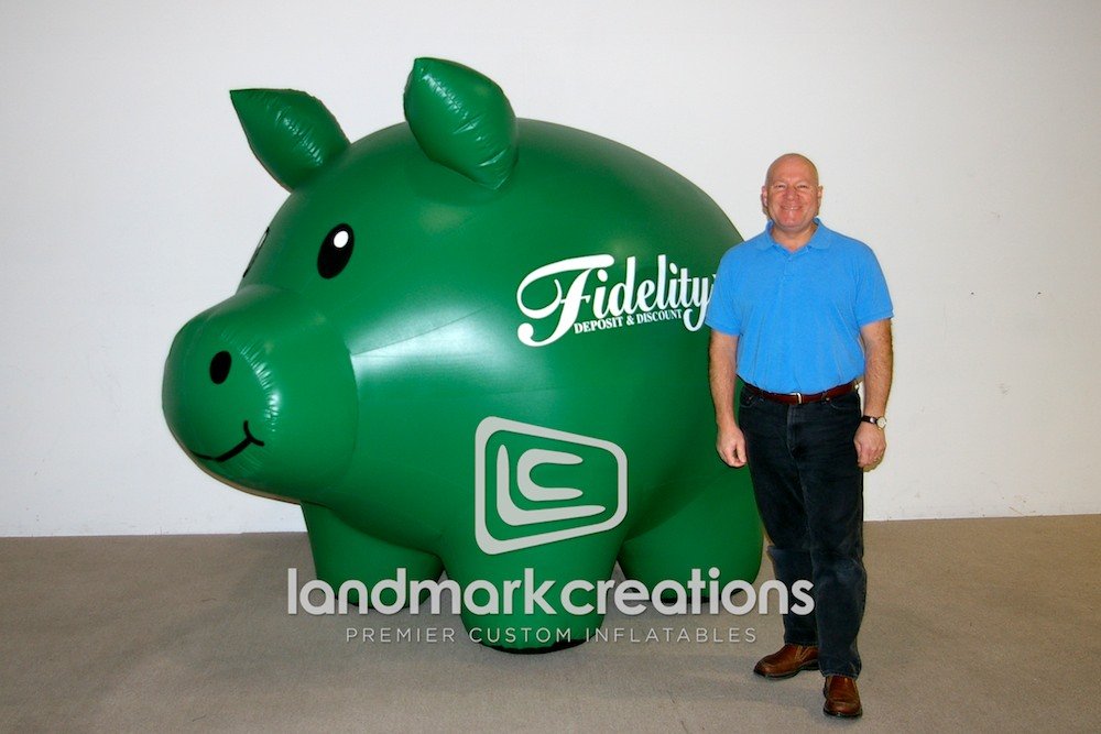 Looking for a creative way to drive traffic to a newly opened bank branch? Custom inflatable piggy banks, like this one for Fidelity Bank, naturally attract attention from those passing by.