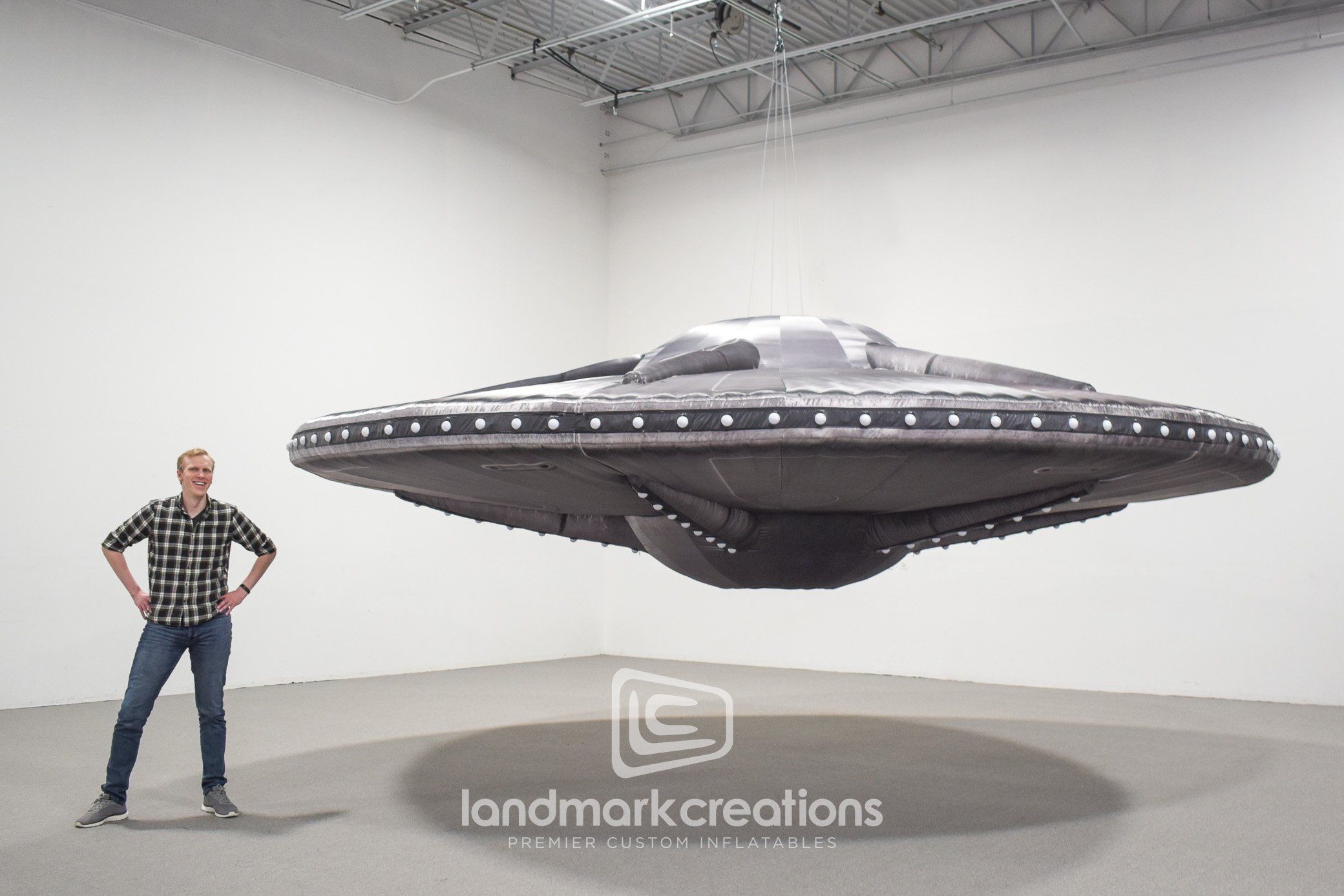 Landmark Creations crafted a striking custom inflatable flying saucer for TAIT Towers, used in Drake’s "It’s All a Blur" tour in 2023. This 20-foot-wide set piece added a dynamic, otherworldly element to the artist's stage production, elevating the concert experience for fans. Designed for indoor suspension, this inflatable exemplifies how custom stage inflatables can transform visual storytelling on tour.