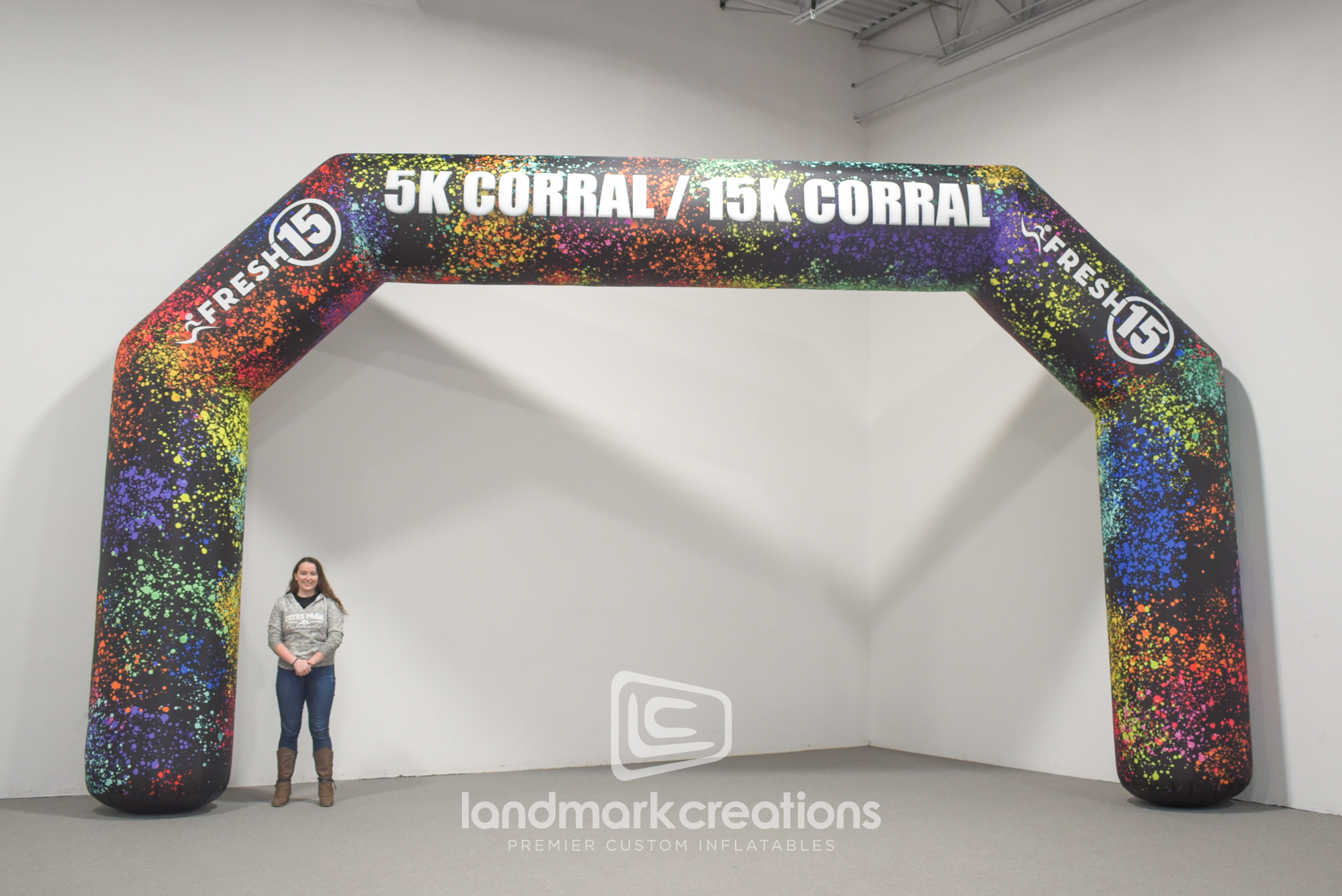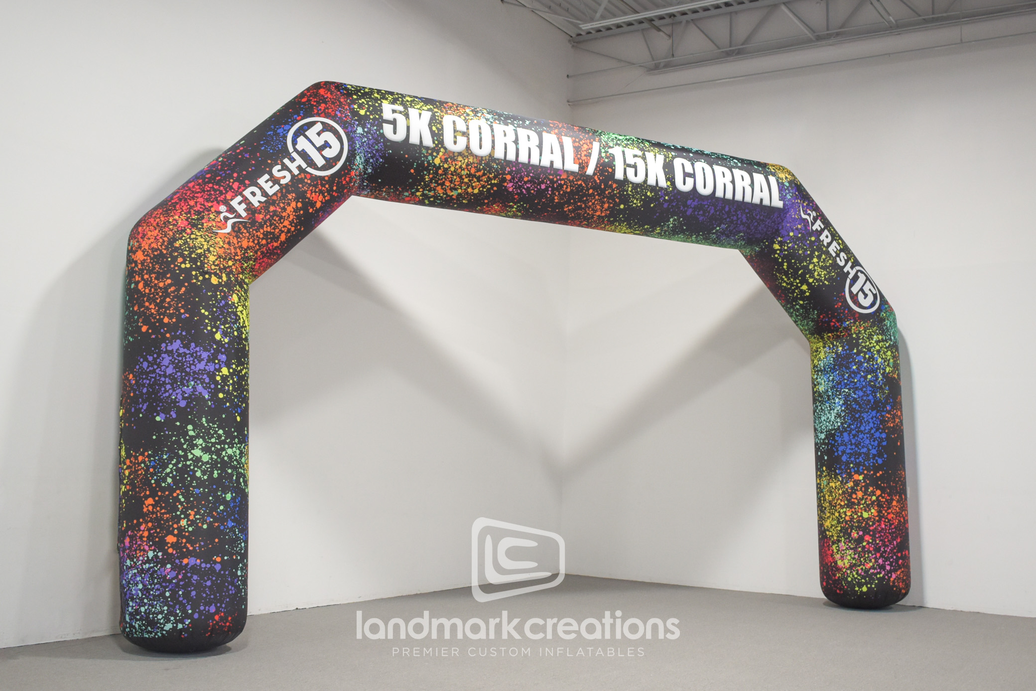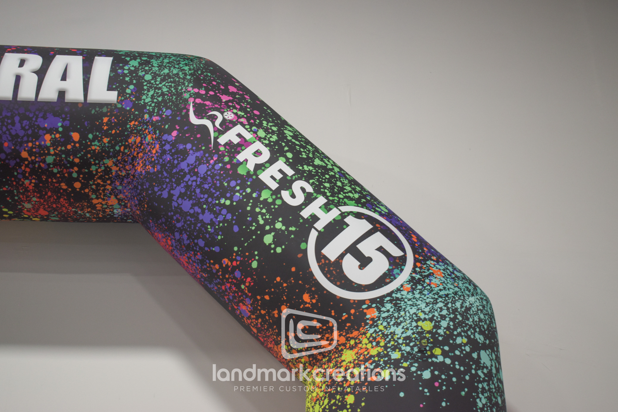 Our custom inflatable Hexi Arch, designed for Brookshire Grocery Company's FRESH 15 race in Tyler, Texas, serves as a dynamic entryway for participants. This 15x26-foot archway enhances the race experience, providing a visually striking focal point that embodies the spirit of health and wellness.