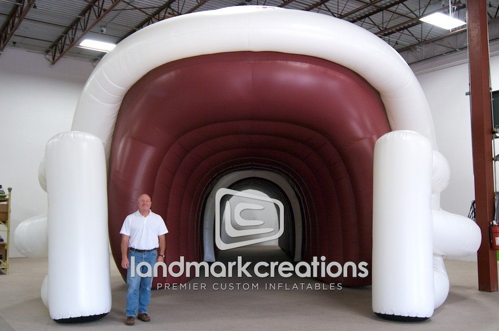 Inflatable football helmets with extension tunnels are perfect for making a memorable entrance. All of our inflatable helmets are custom-designed with school colors, emblems and banners.