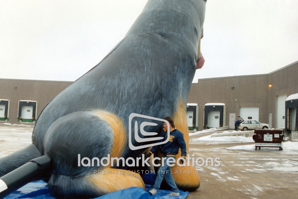 Giant inflatable animals, like this German Shepherd, make a big impression at pet retail locations.
