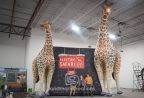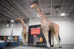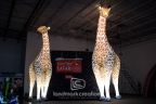 Giant, lovable giraffes flank each side of the Cheyenne Mountain Zoo's Inflatable billboard welcoming guests to the Electric Safari seasonal light show event.